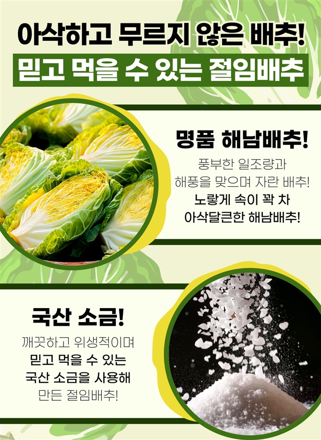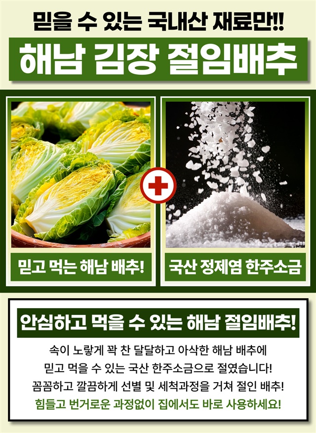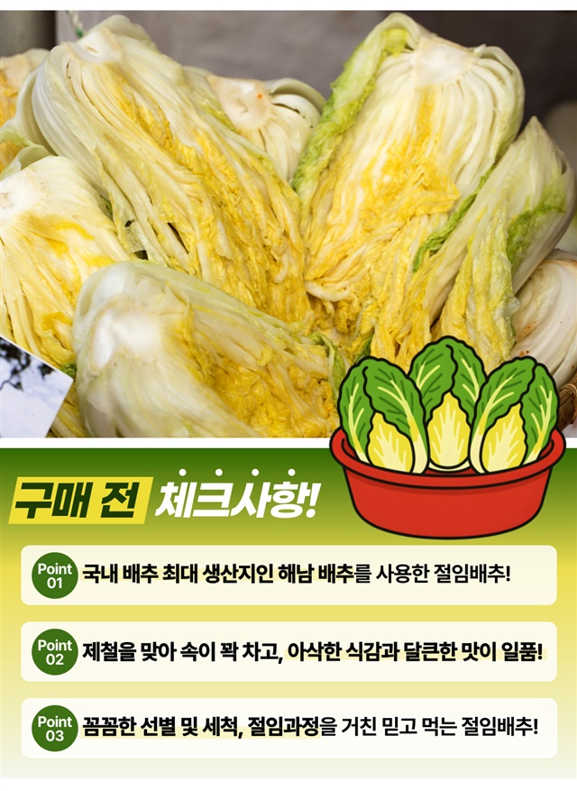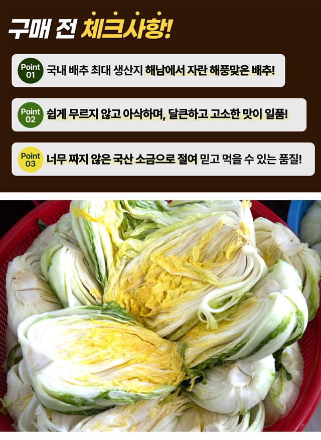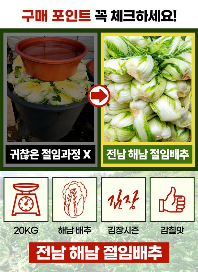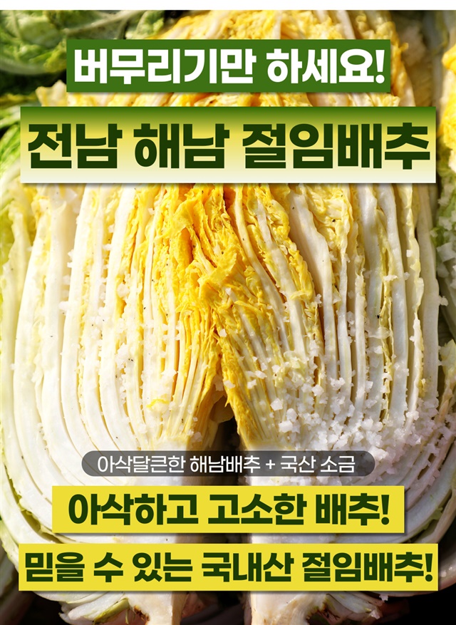 김장철 국내산 소금 해남 절임배추 20kg (7-9쪽)
