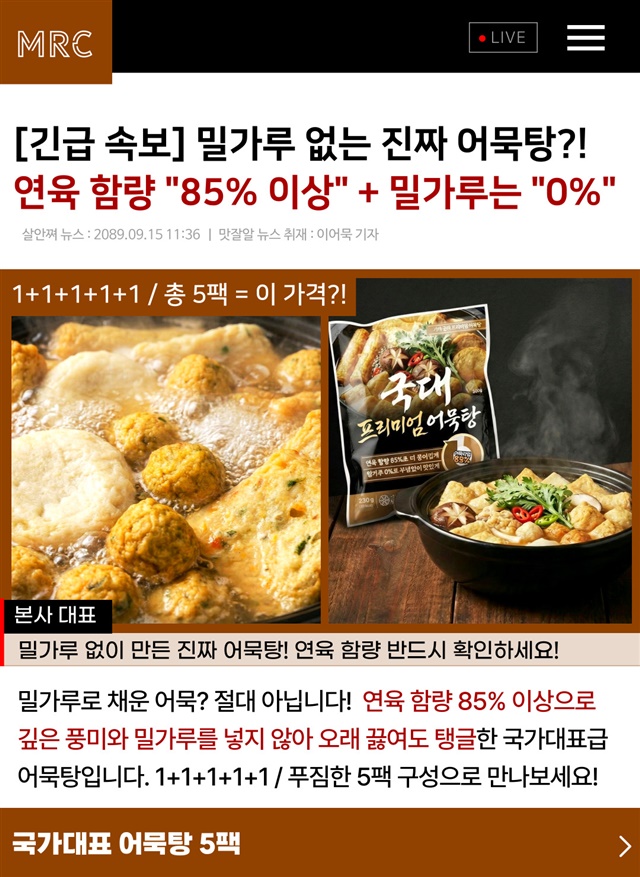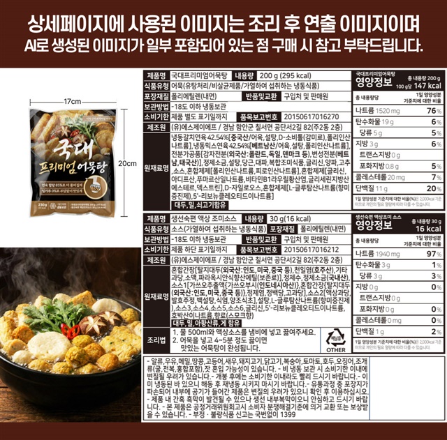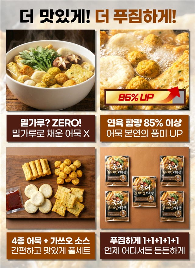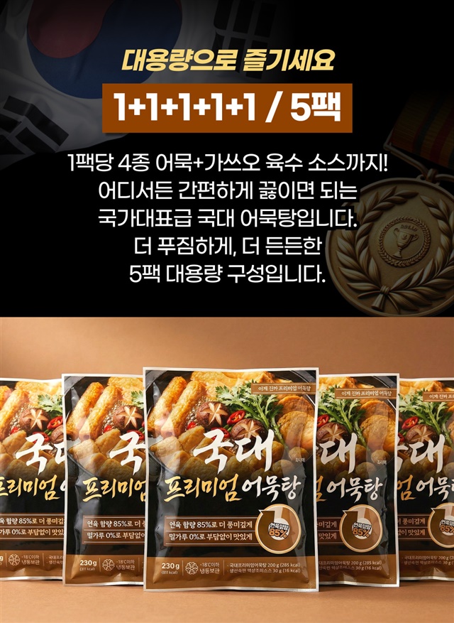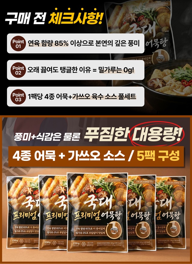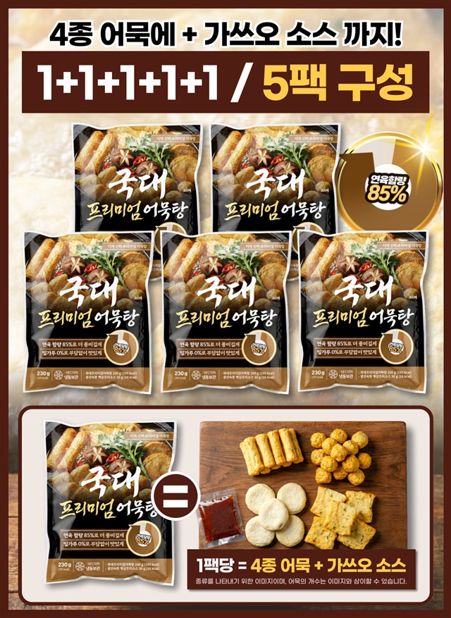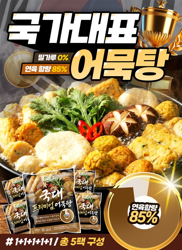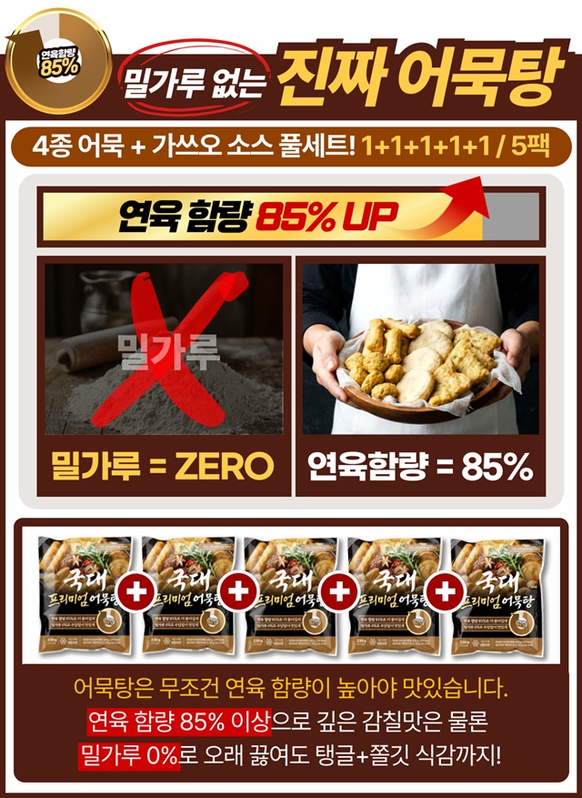 [연육함량 85%] 밀가루 없는!! 연육 85% 이상 프리미엄 국가대표 모듬 어묵탕 X 5팩