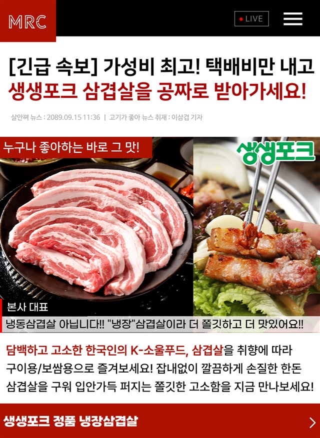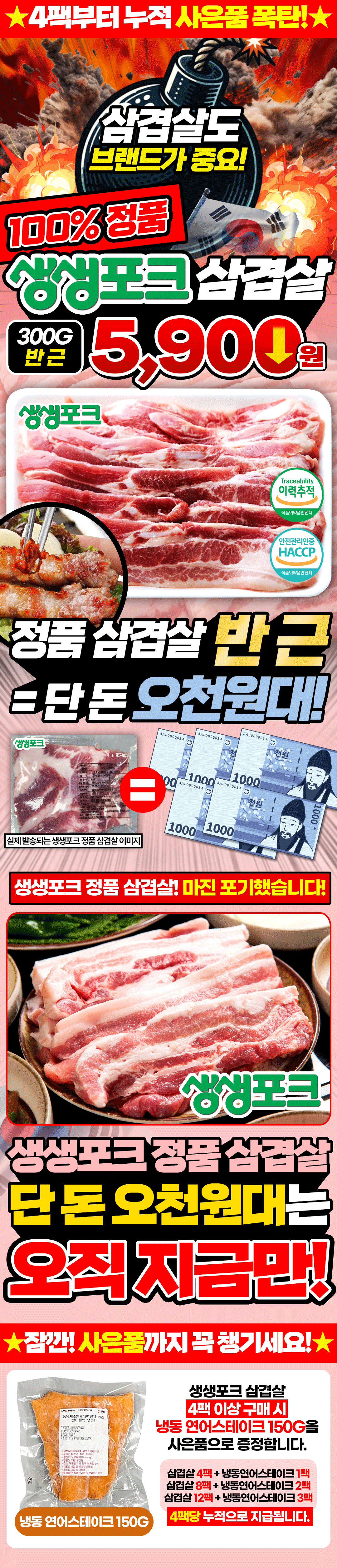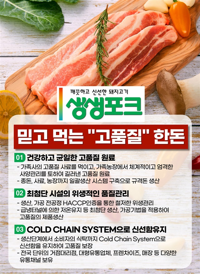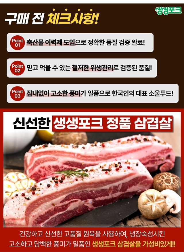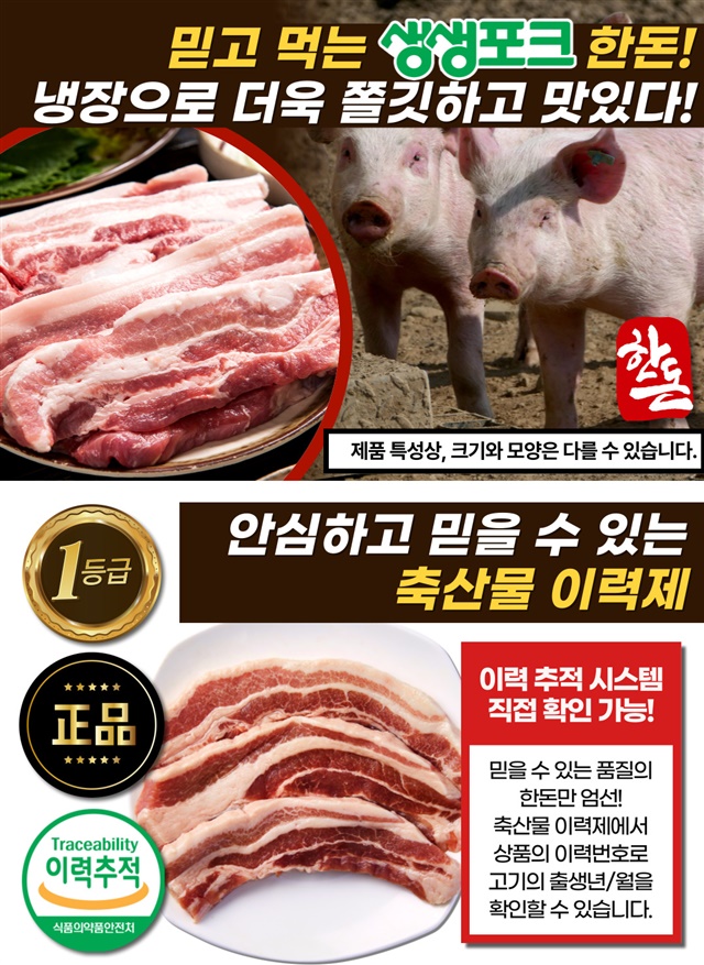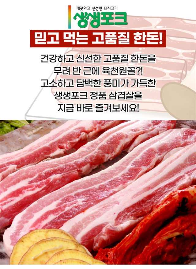 생생포크 정품! 100% 냉장 한돈 삼겹살