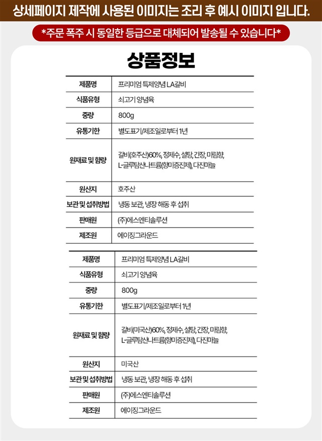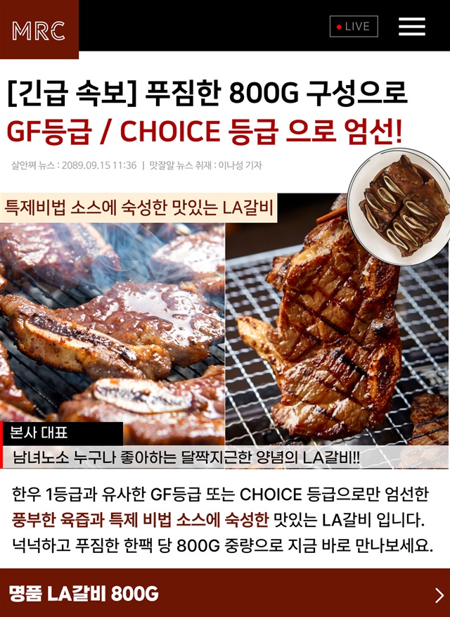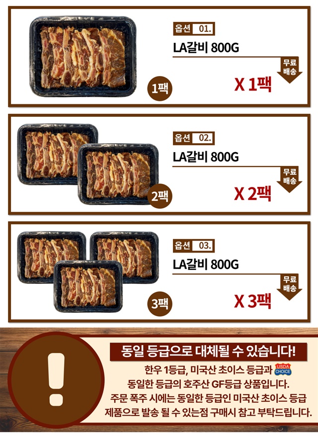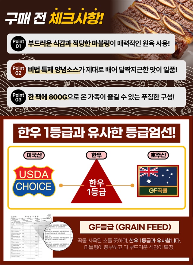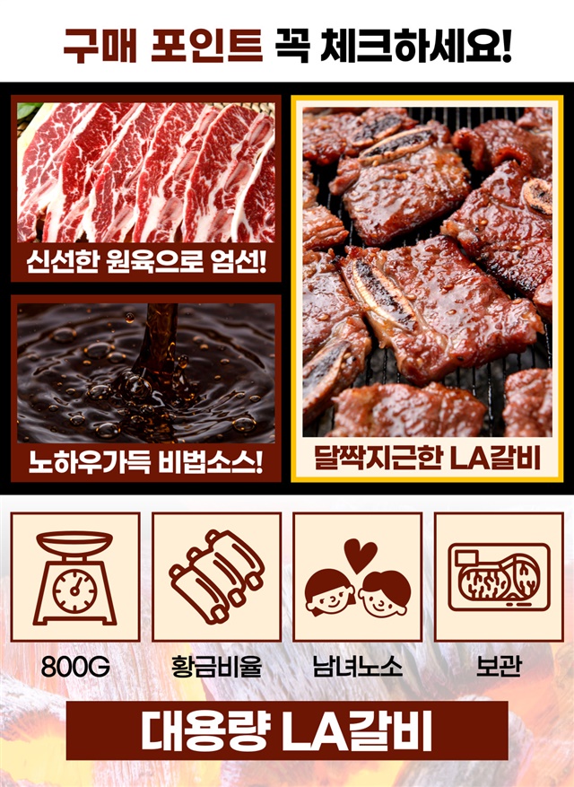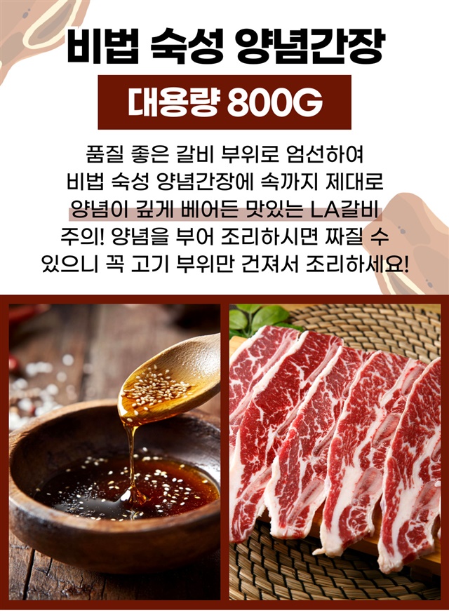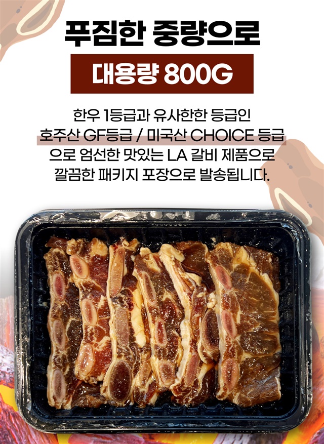 GF등급이상! 비법 특제양념 으로 만든 명품 LA갈비 대용량 800G X 1~3팩
