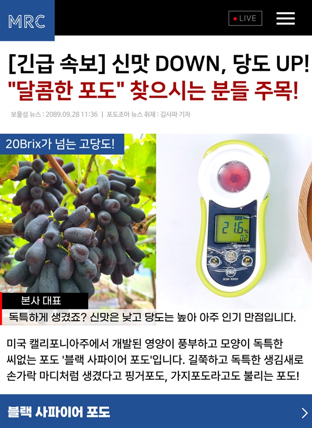 눈과 입이 즐거운 고당도 명품포도 블랙사파이어