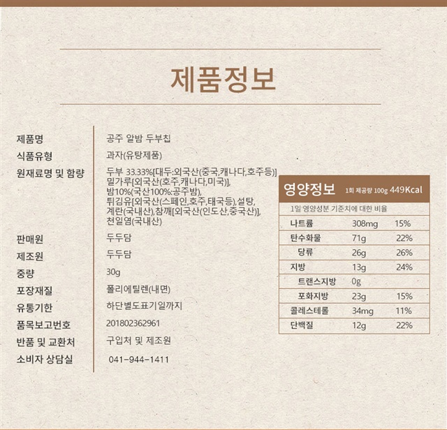 100% 국내산 공주 알밤이 들어간 담백꼬소 공주 알밤 두부칩 X 10봉