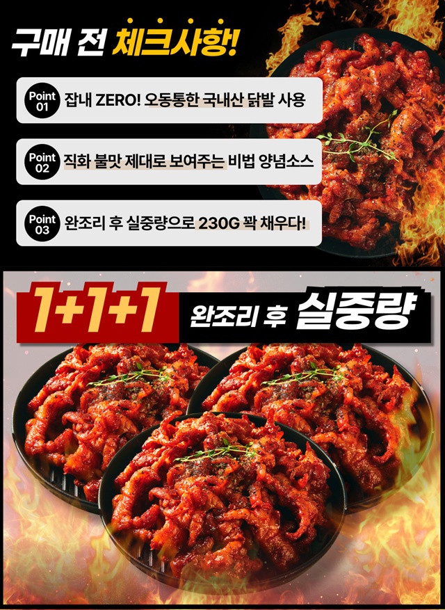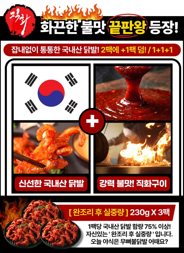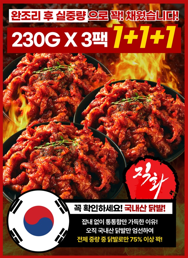 쫄깃통통 강력 불맛! 국내산 무뼈 불 닭발 1+1+1구성 (총 3팩)