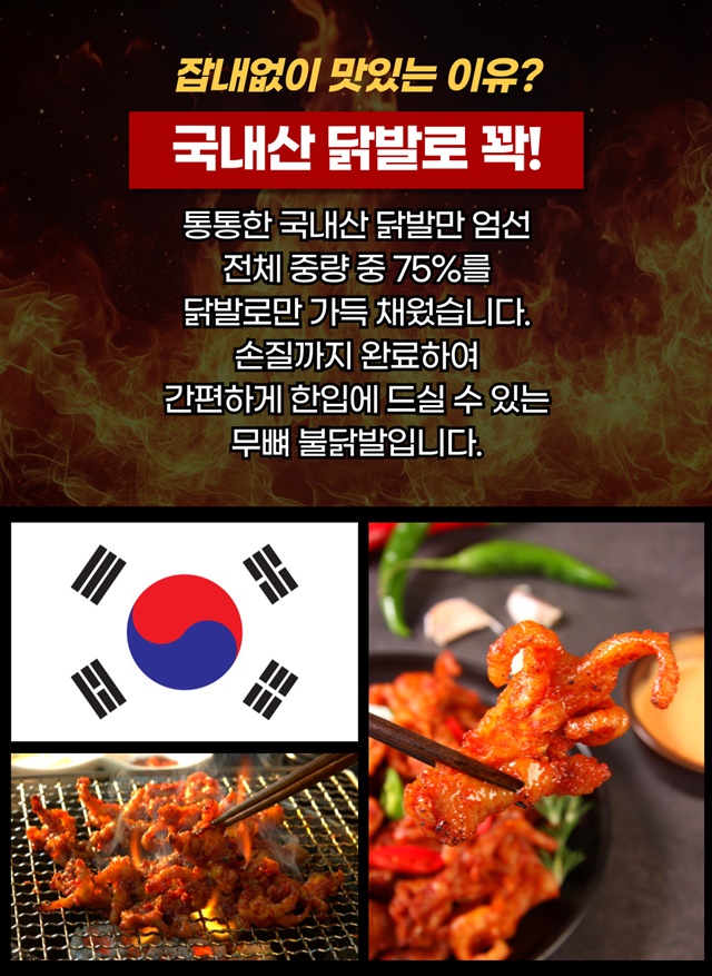맛있게 매콤한 직화 불맛! 국내산 닭발 함량 75%
