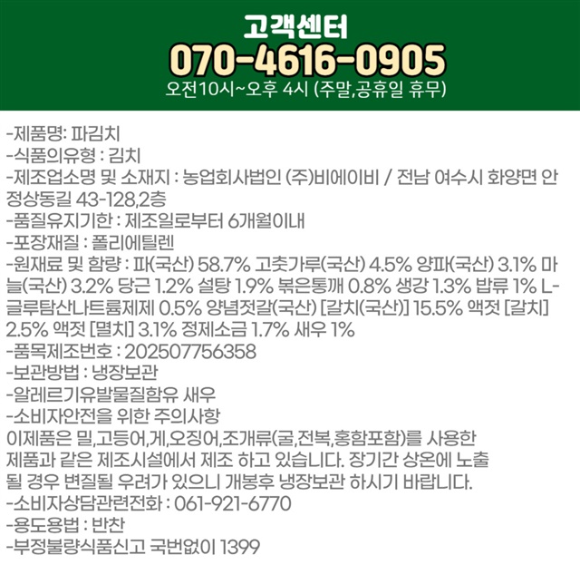 30년 전통! 알싸한 감칠맛 맵싹한 전라도 파김치 1.5kg