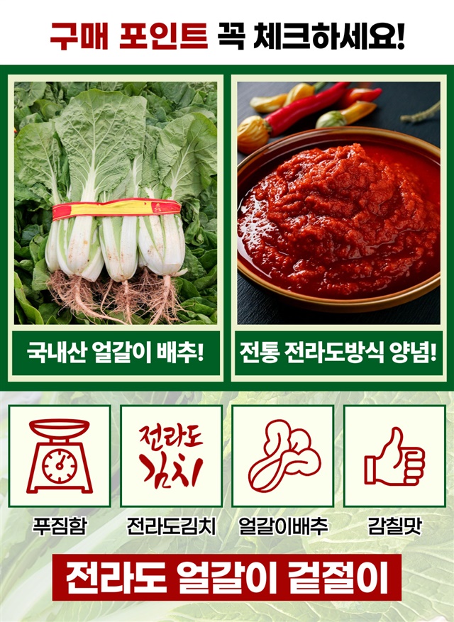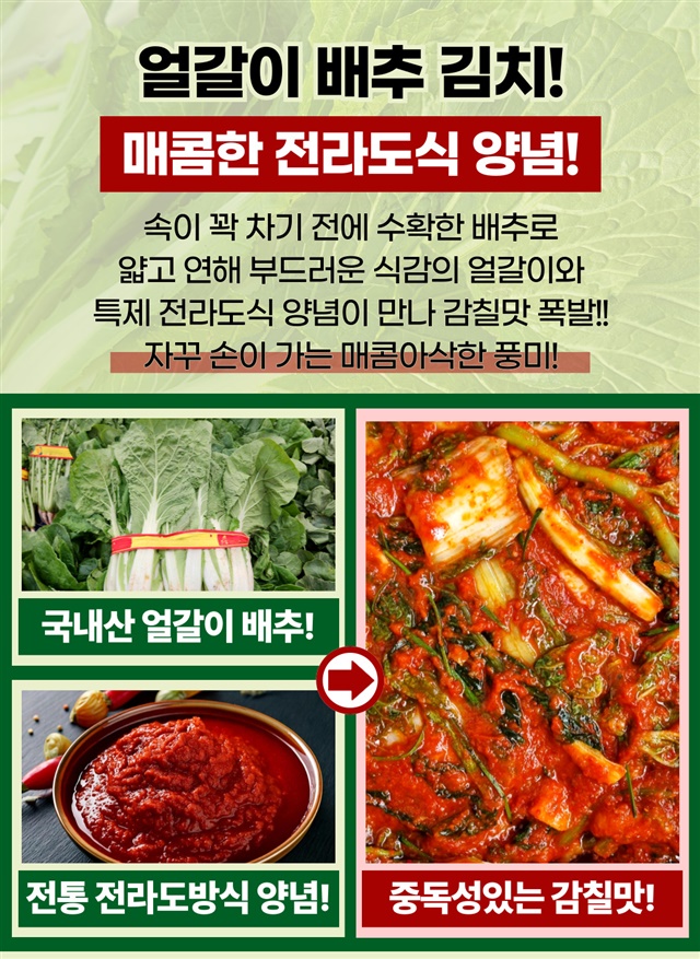 100% 국내산 당일제조 전라도 얼갈이 겉절이 2kg