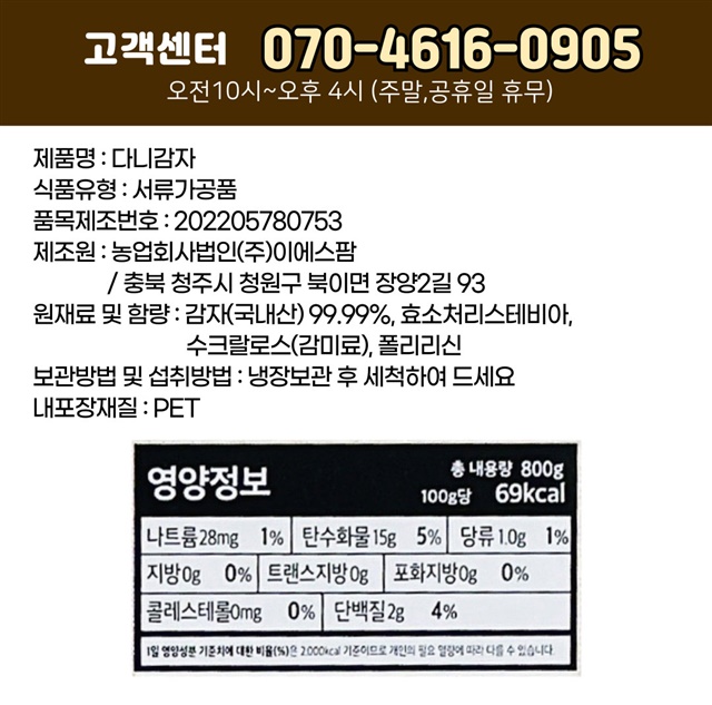 건강한 달콤함! 국내산 스테비아 감자 800g X 2팩 (총 1.6kg)