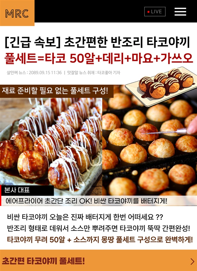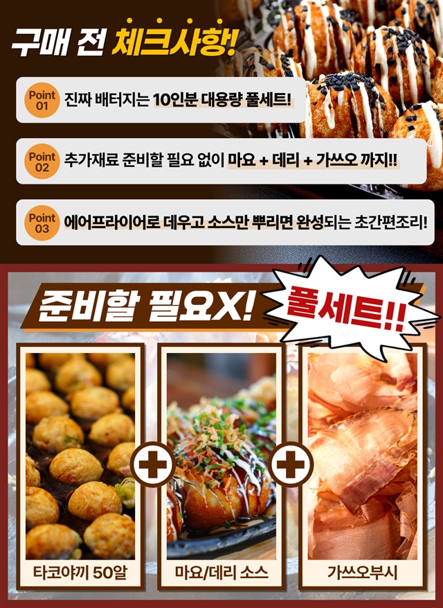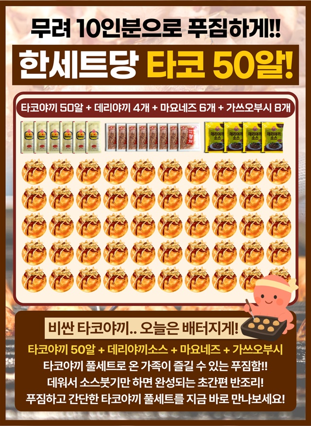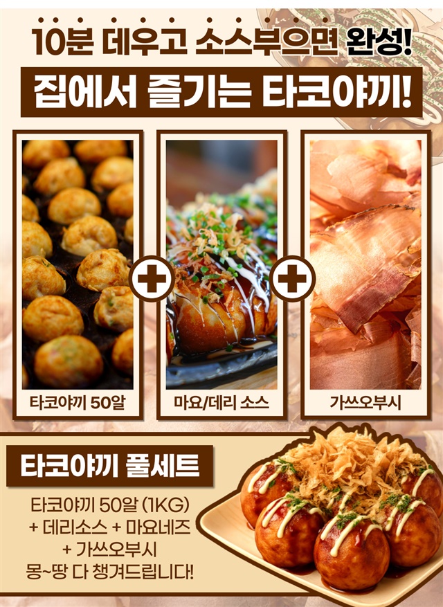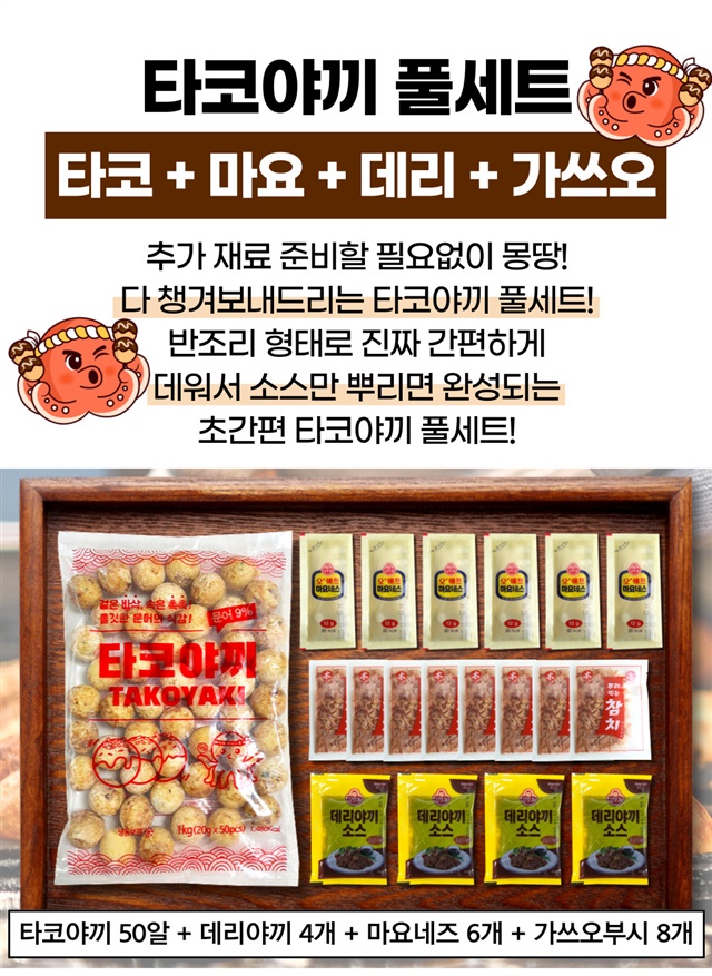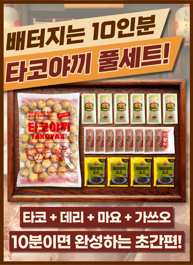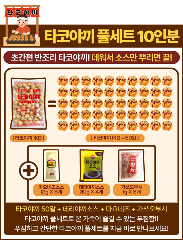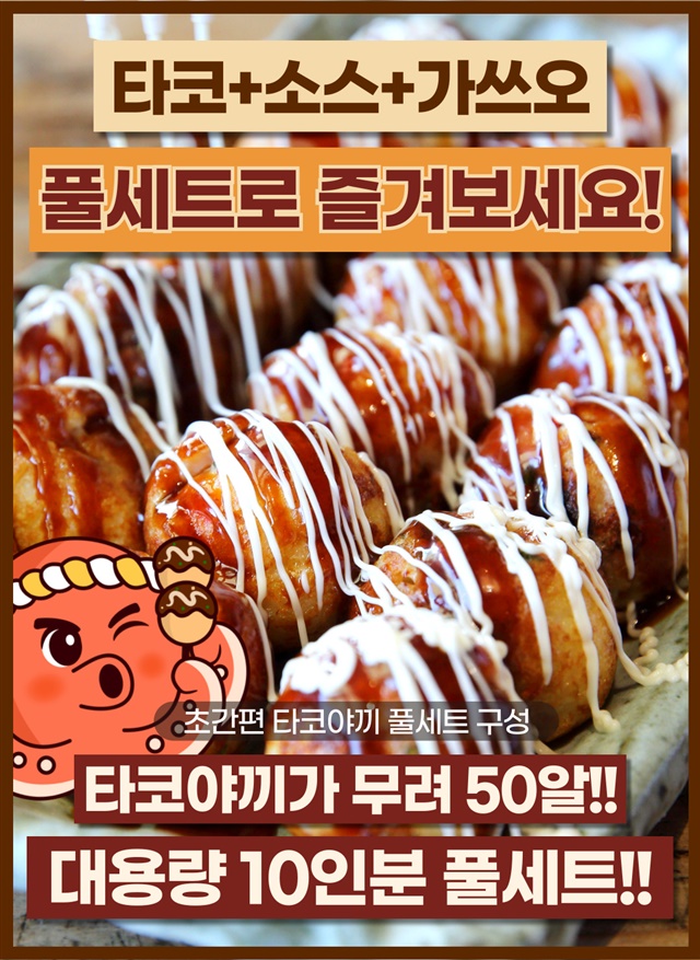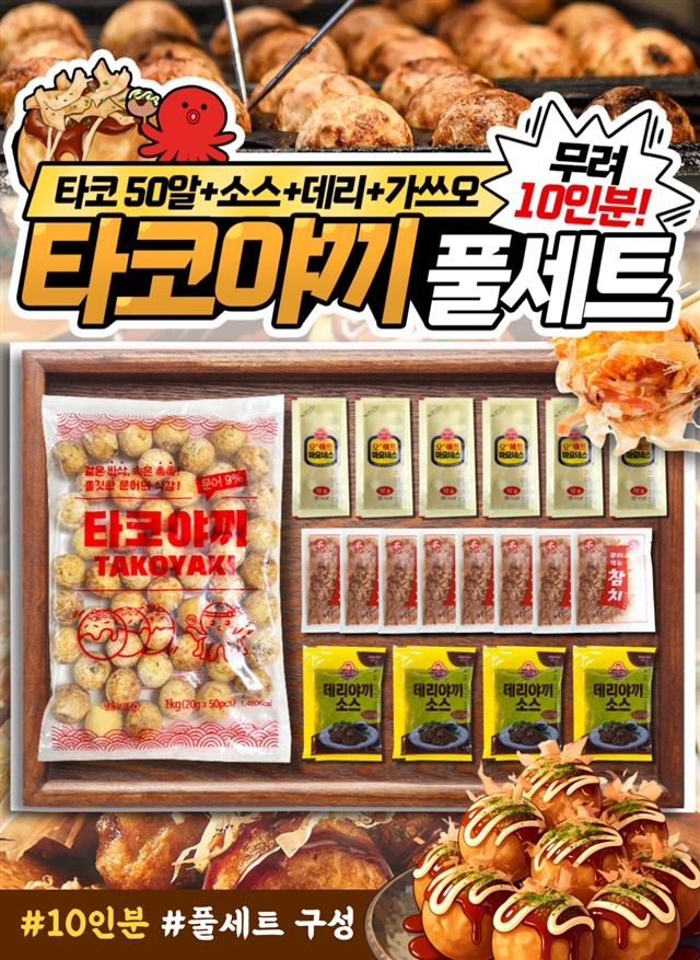 [10인분 풀세트] 오사카식 타코야끼 대용량 풀세트 (타코야끼 50개+가쓰오+소스모음)