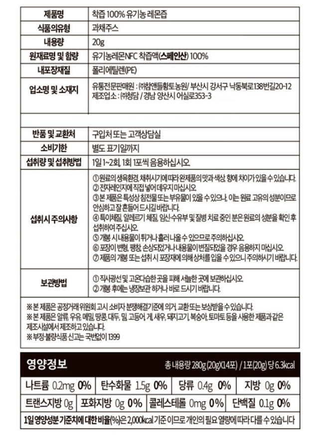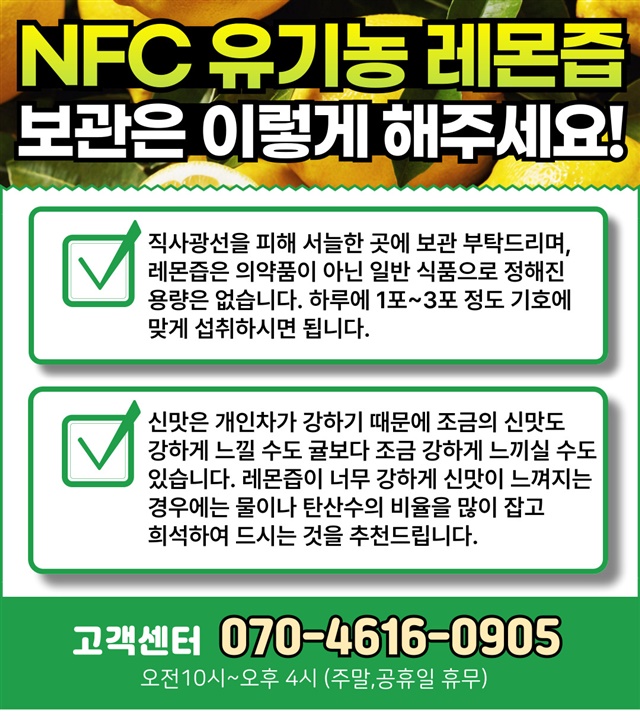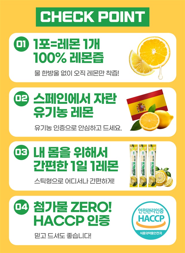 레몬즙 1포 = 100% 레몬 1개가 꽉!