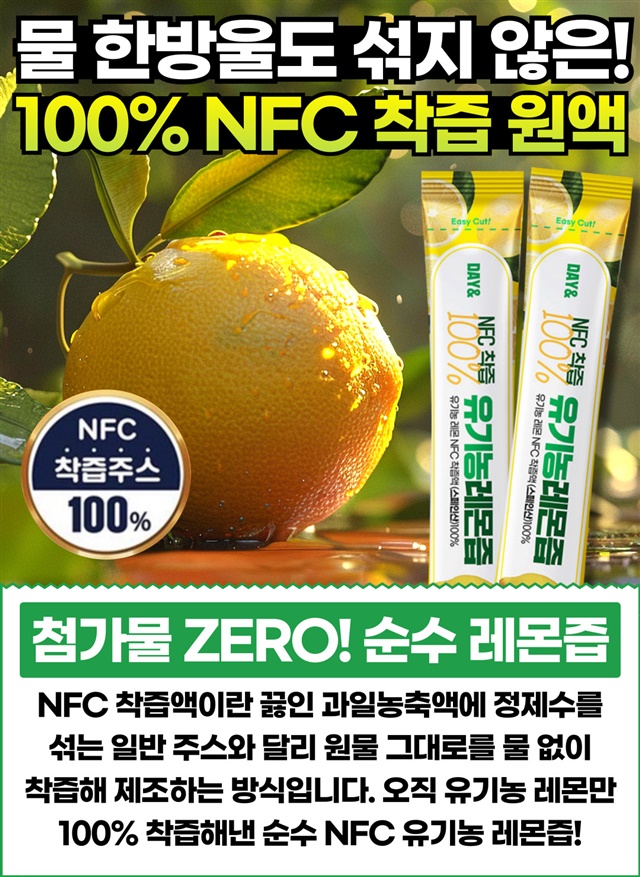 [대용량 100포] 물 한방울 없는! NFC 착즙 레몬즙 스틱 100포 (한박스)