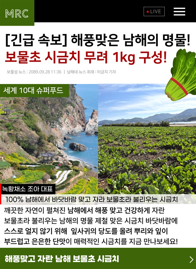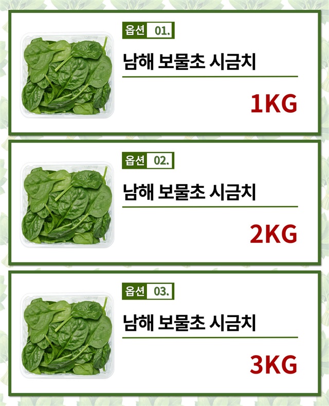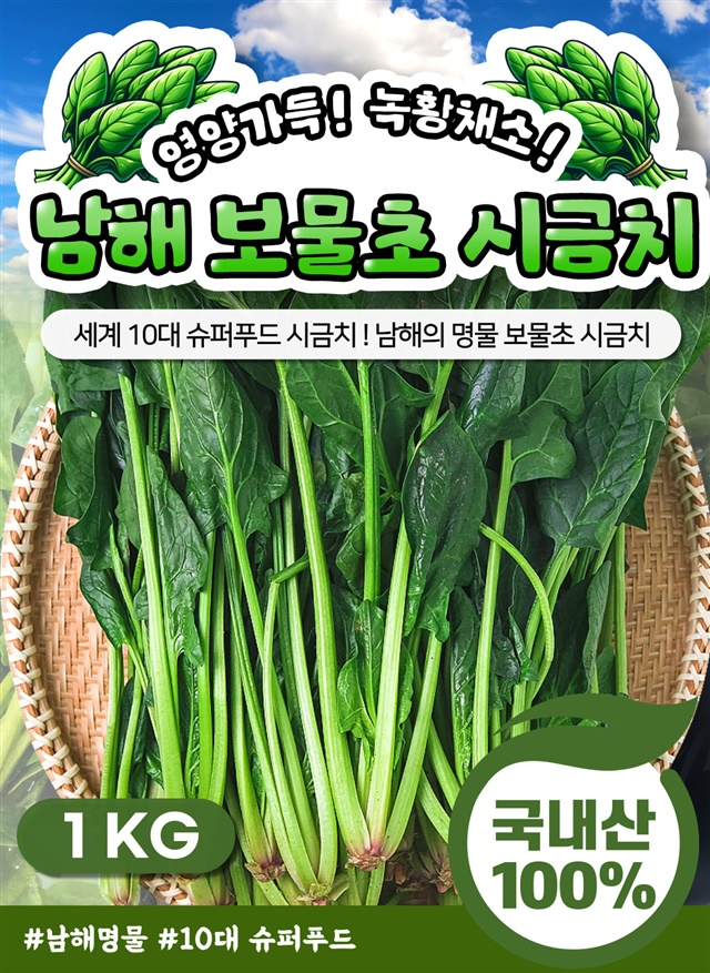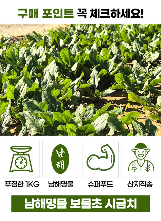 남해 해풍맞고 자란 영양채소! 보물초 남해 시금치 1kg