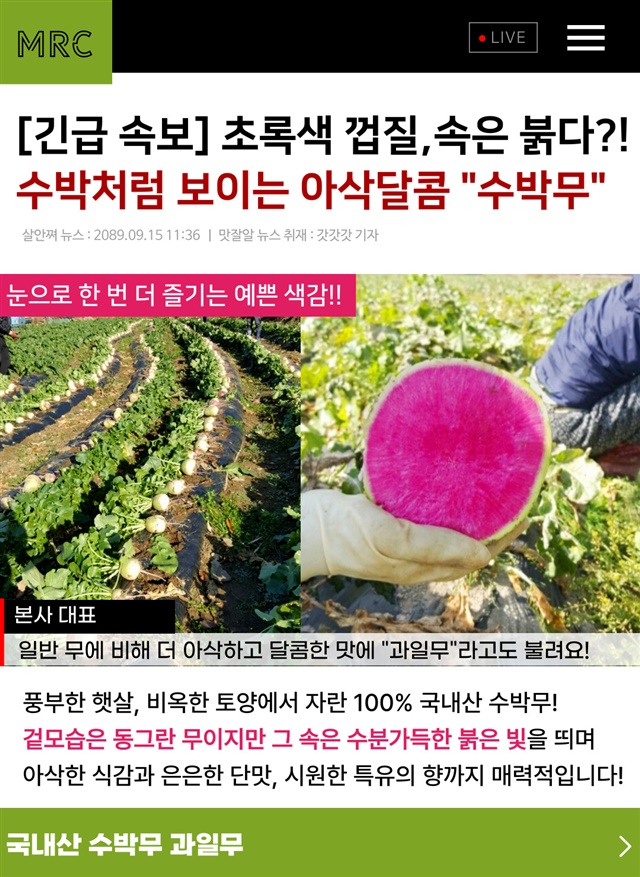 아삭아삭! 달콤한 과일 무 제철 국내산 수박무 3kg