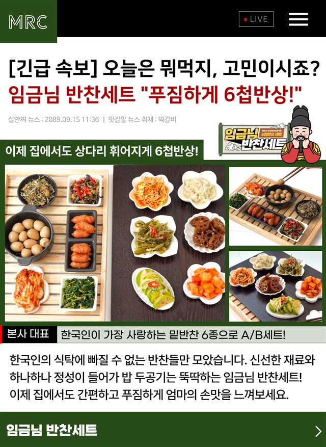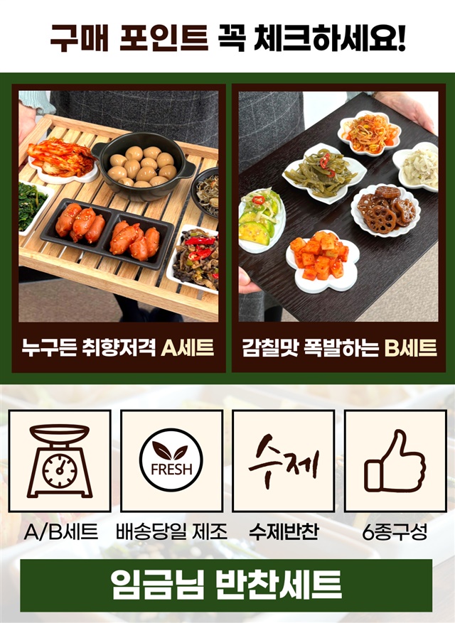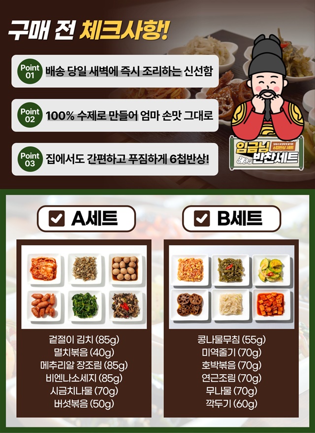 [당일생산] 100% 수제로 새벽에 만드는 임금님 반찬 6종 세트