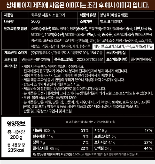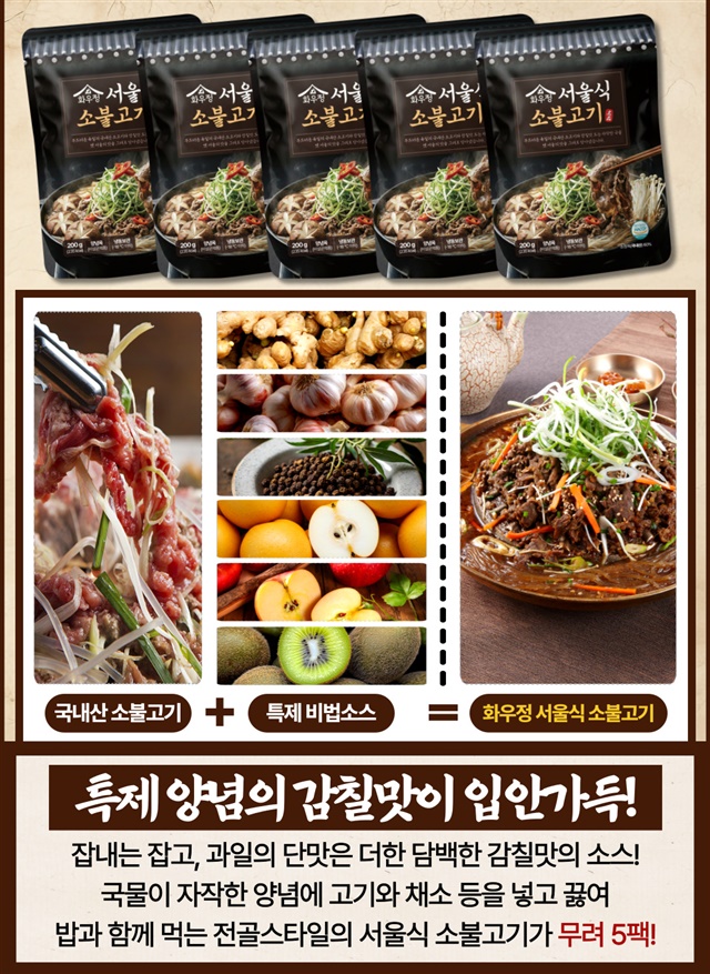 [100% 국내산 소고기] 화우정 서울식 소불고기 200g X 5팩