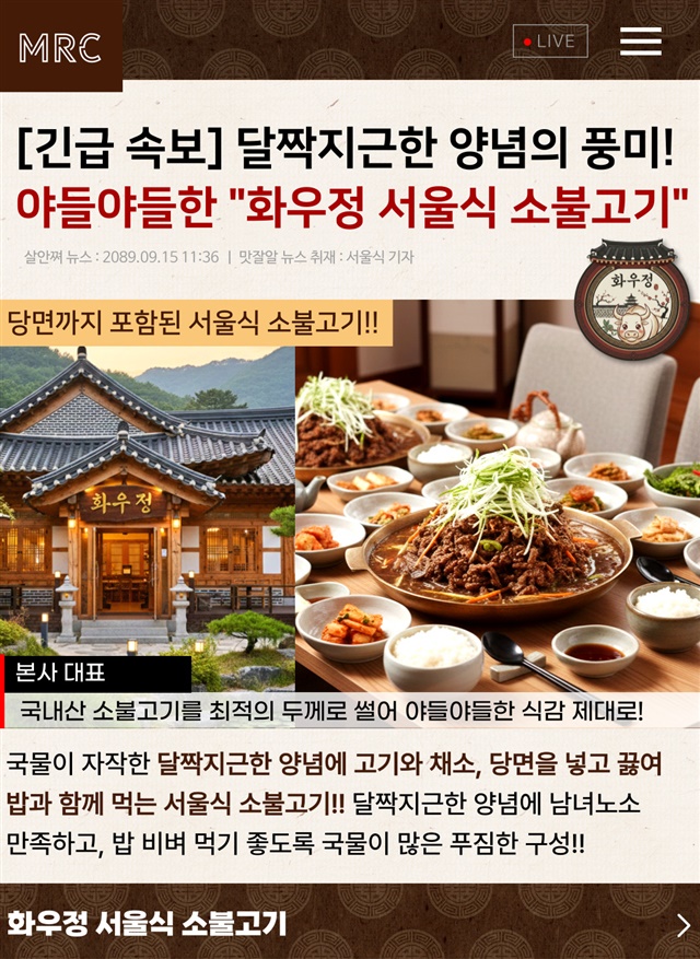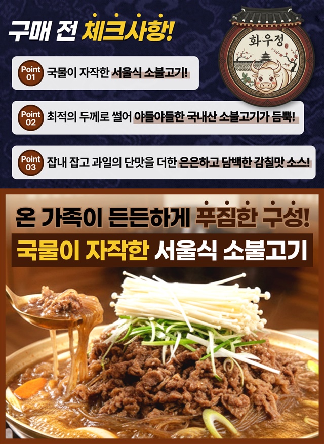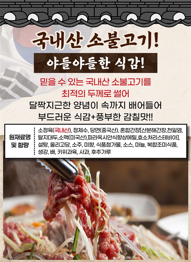 믿고 먹는 100% 국내산 소고기 + 화우정 특제양념