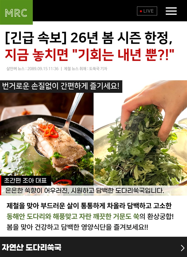 자연산 도다리 + 거문도 쑥 제철 영양식!