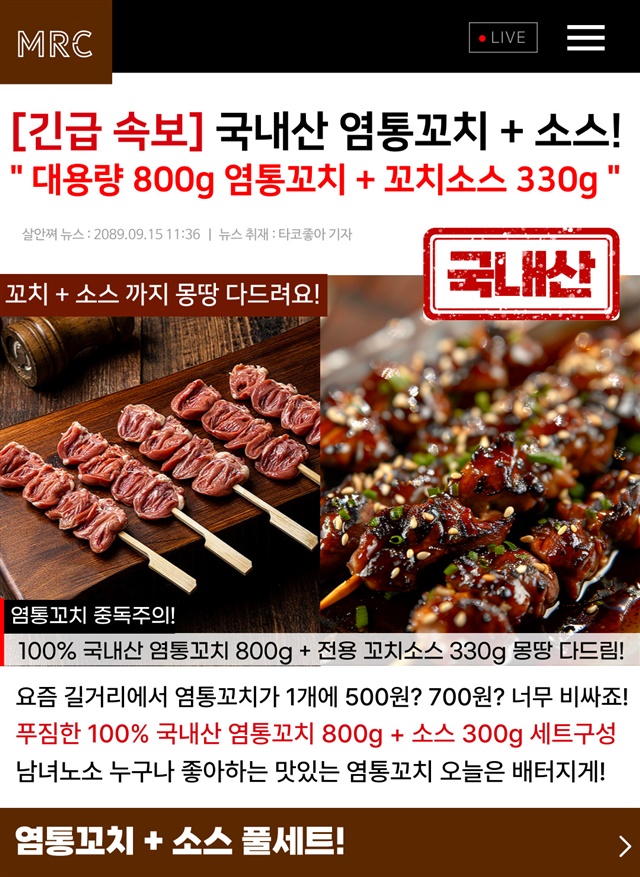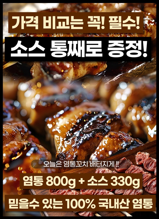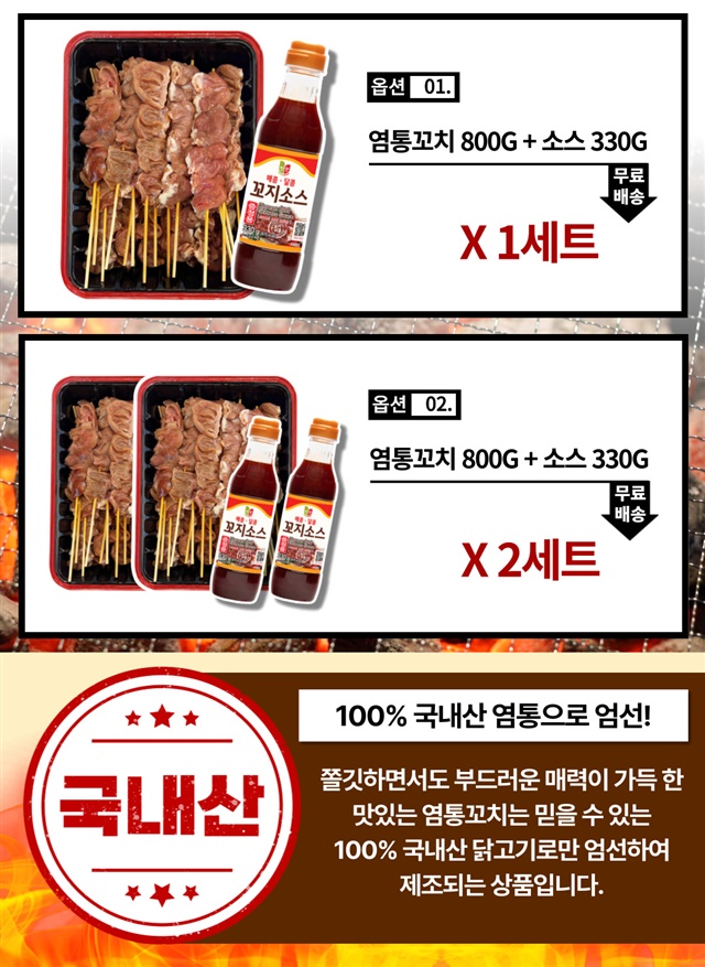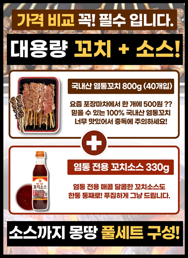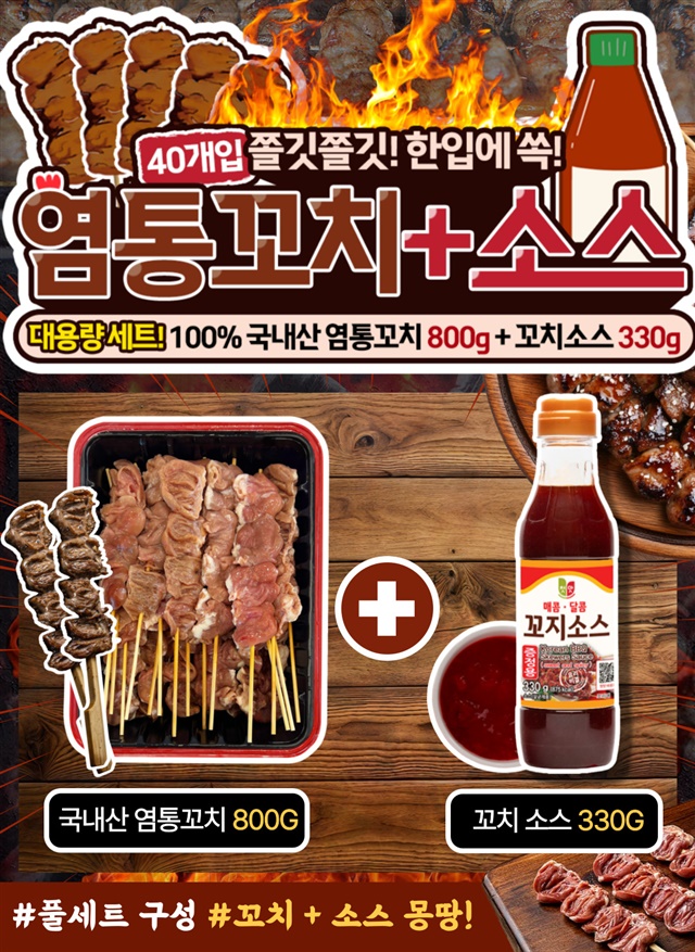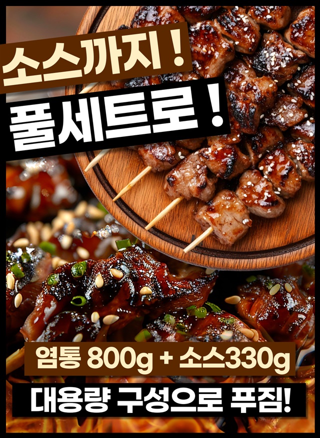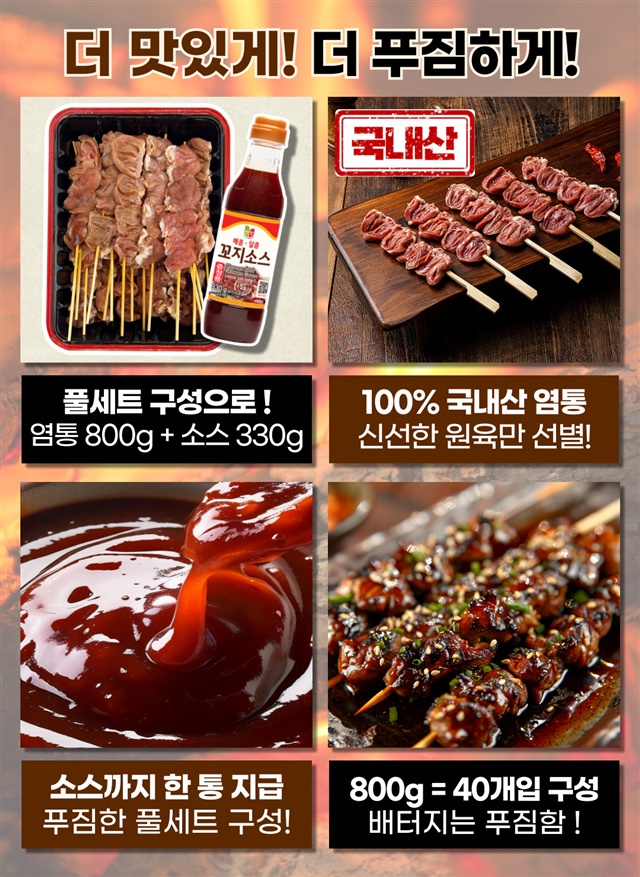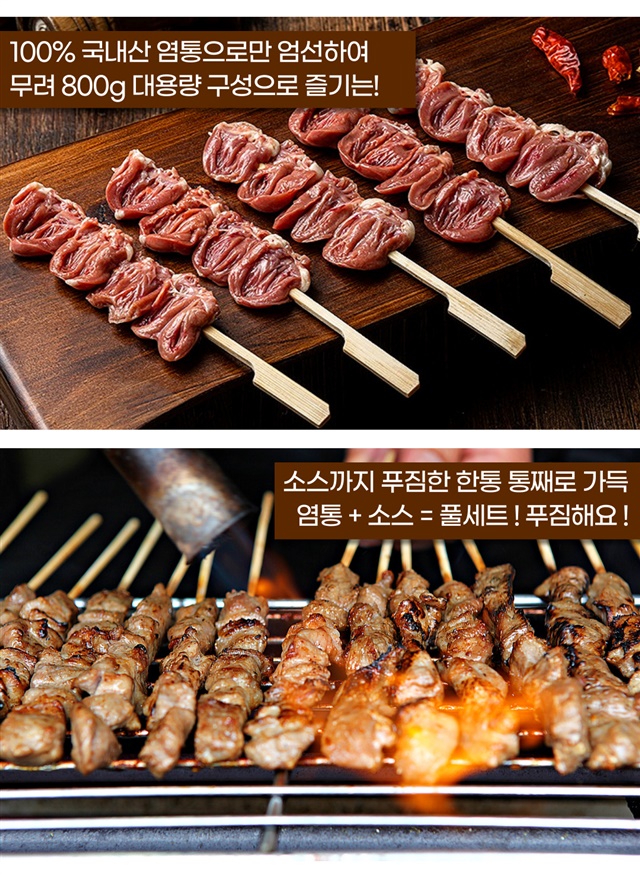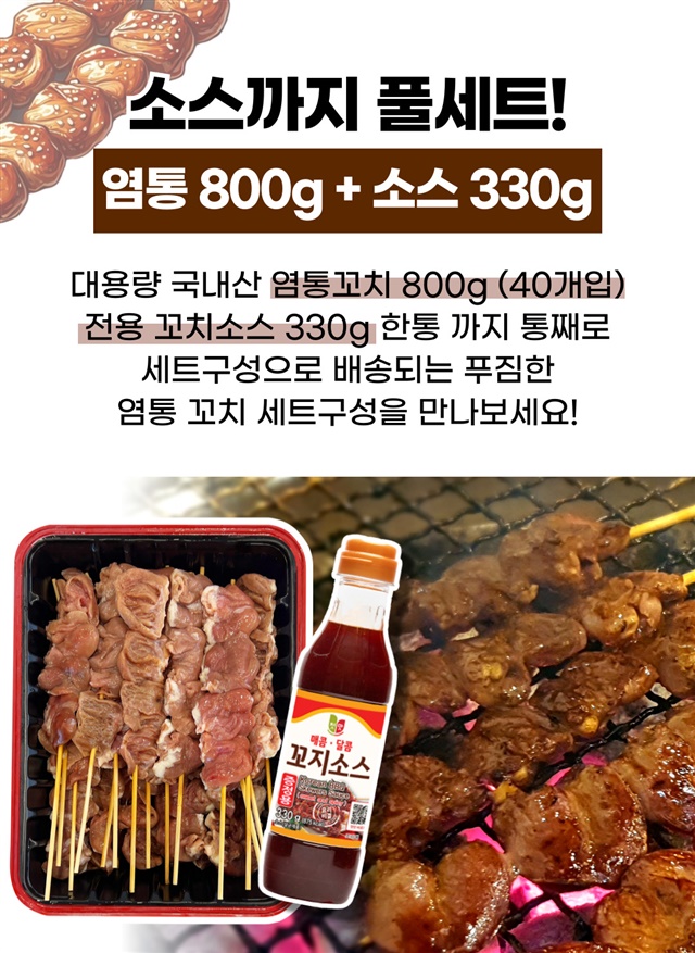 10인분 대용량! 100% 국내산 염통꼬치 800G + 꼬치소스 330G / 풀세트 구성