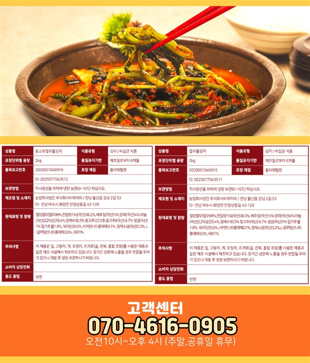 100% 국내산 당일제조 전라도 얼갈이 겉절이 2kg