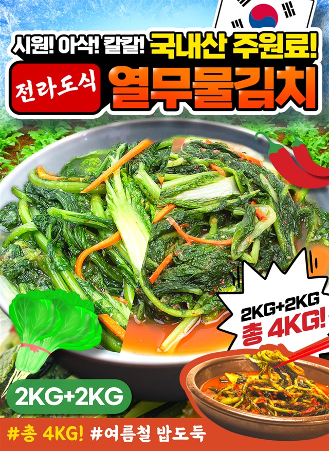 [2KG+2KG] 아삭아삭 시원한 맛이 일품! 열무물김치/홍고추열무물김치 2KG + 2KG