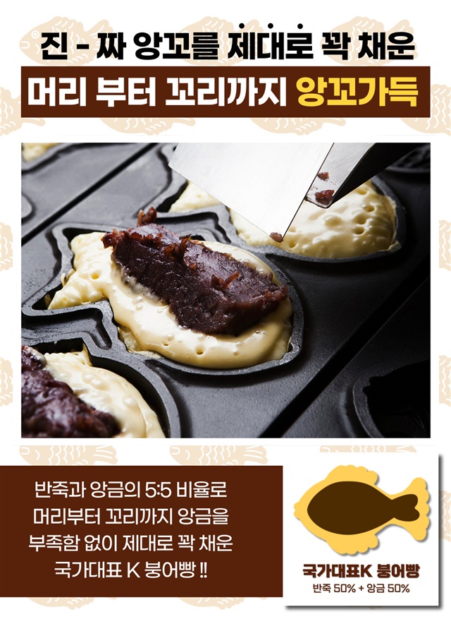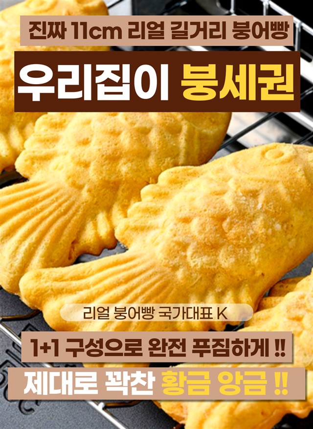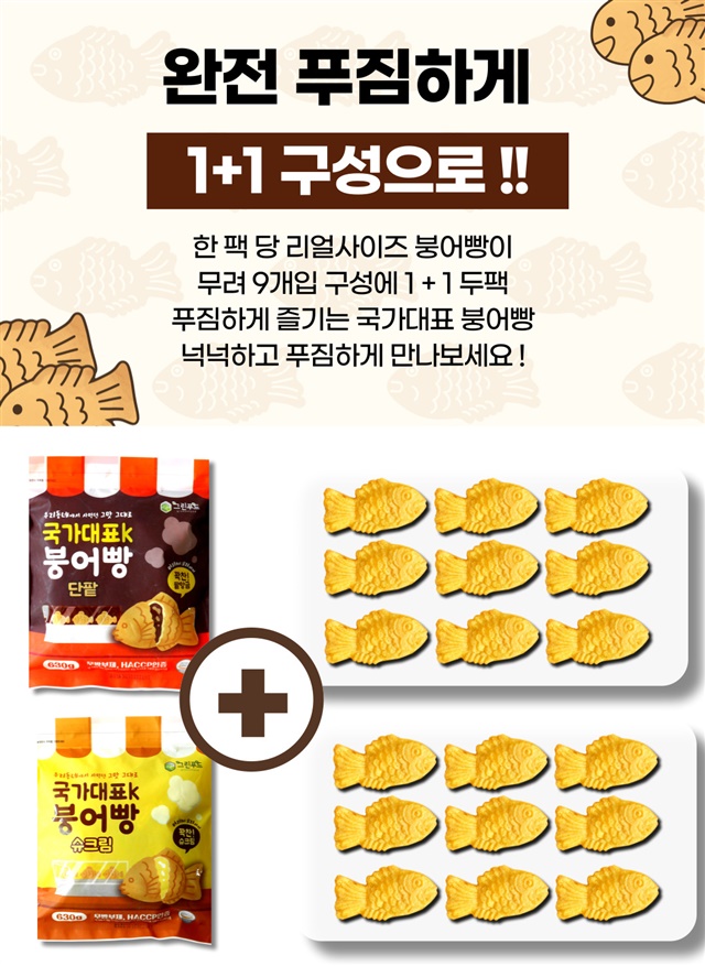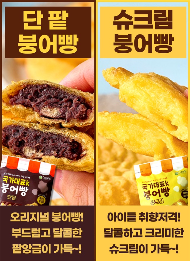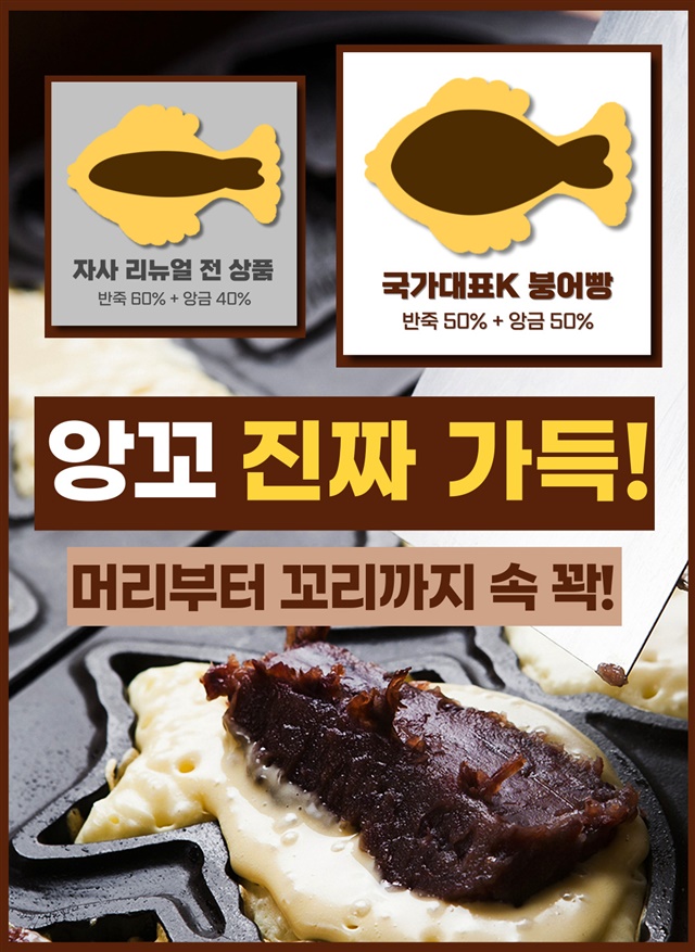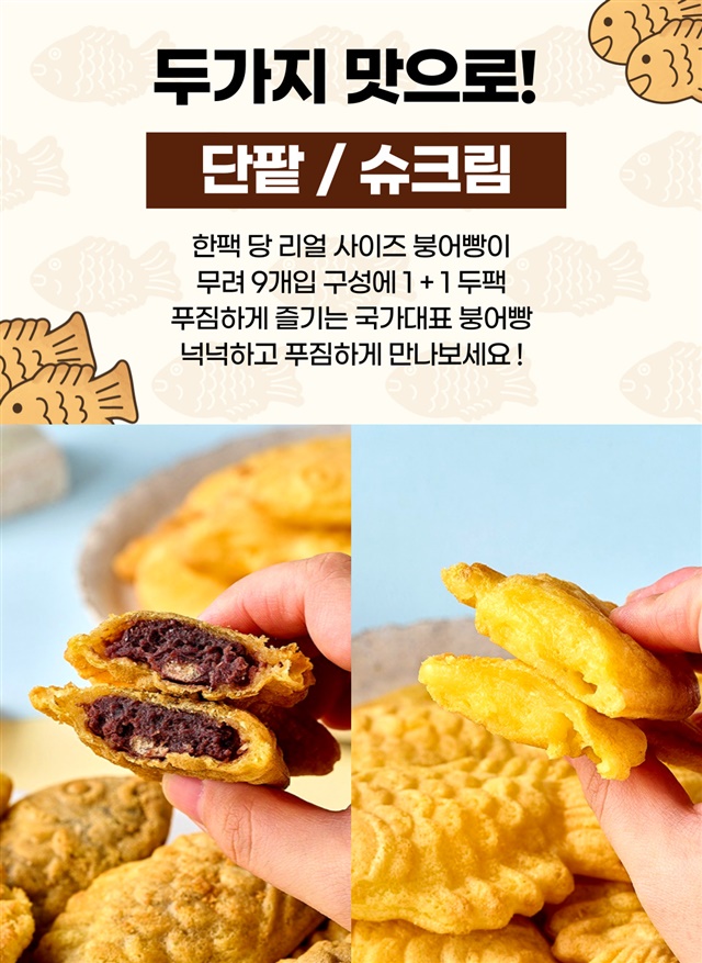 [대용량] 길거리 리얼붕어빵 앙금함량 50% 국가대표 K 붕어빵 X 2팩 (통팥/슈크림)