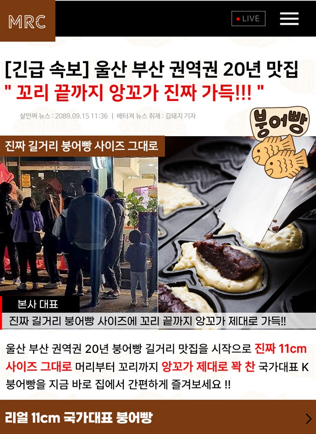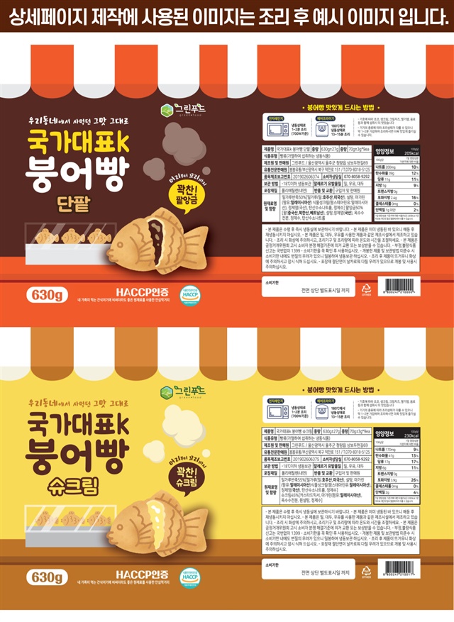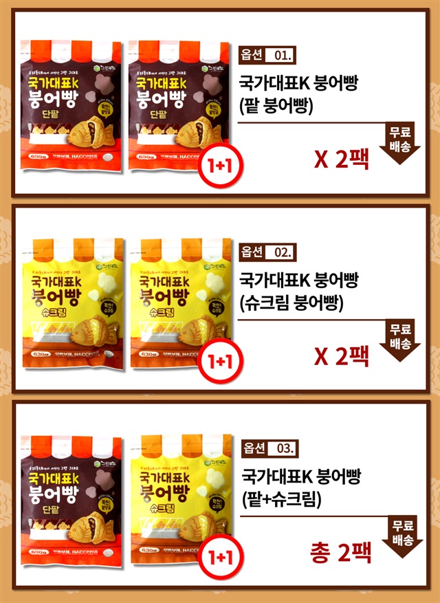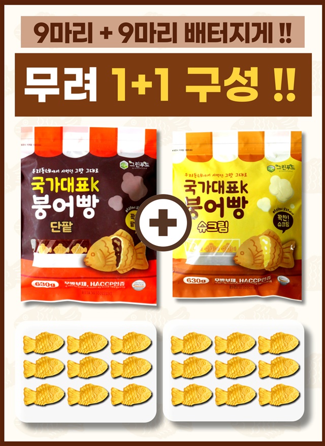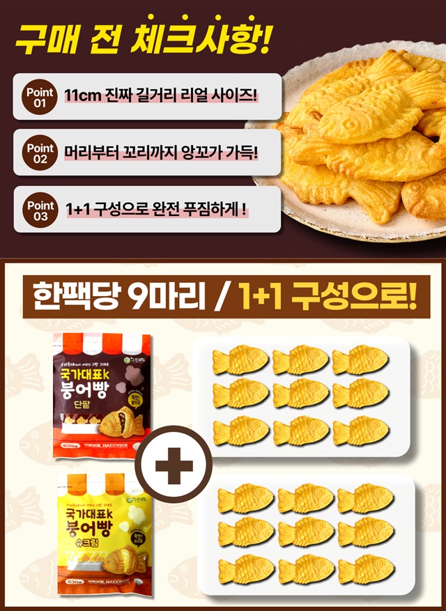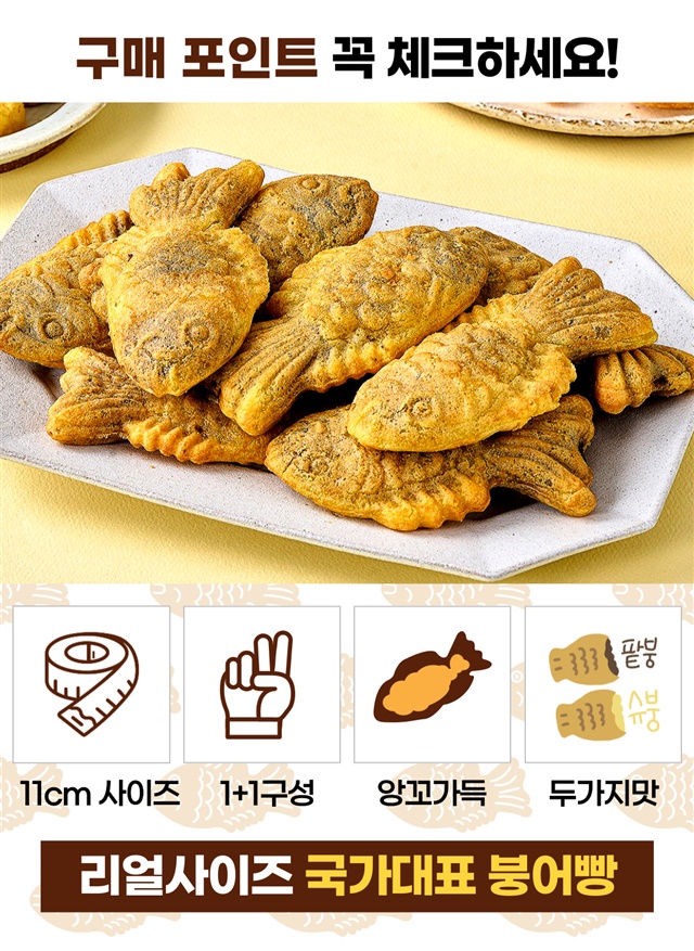 [대용량] 길거리 리얼붕어빵 앙금함량 50% 국가대표 K 붕어빵 X 2팩 (통팥/슈크림)