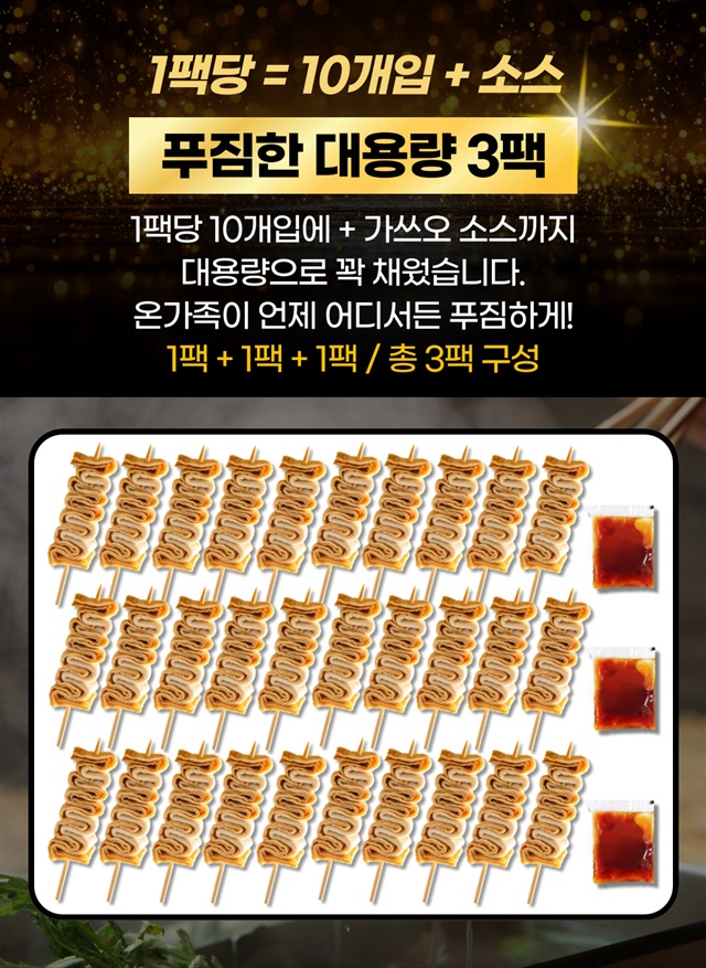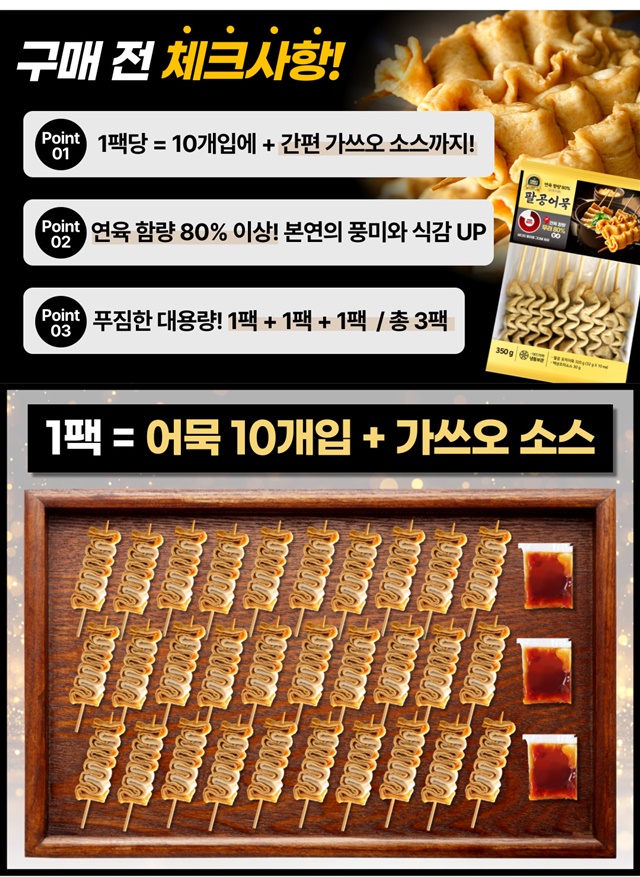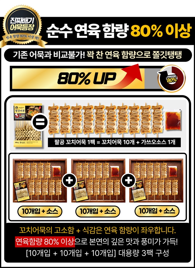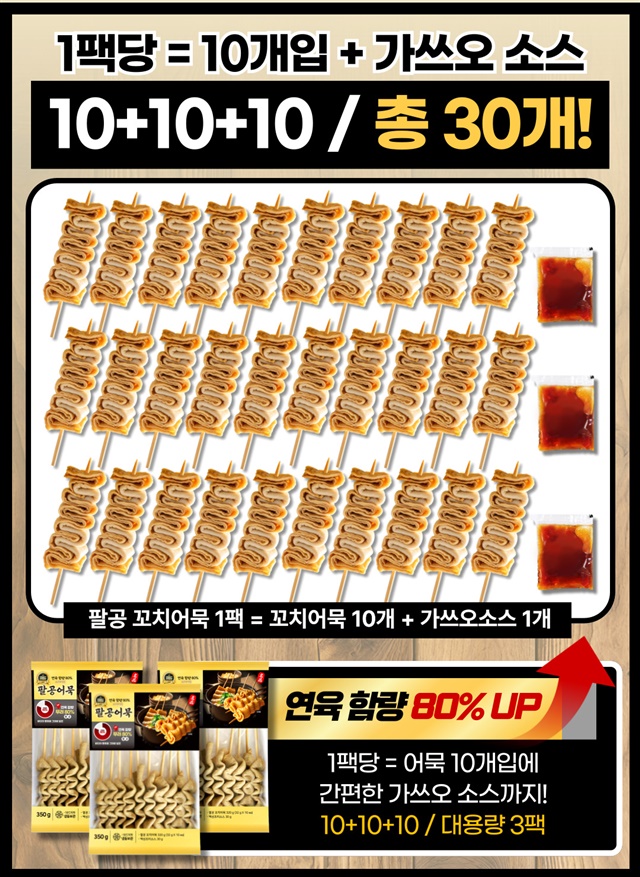 [연육함량 80%] 팔공 프리미엄 고연육 함량 꼬치어묵 [10개입 + 장소스] X 3팩