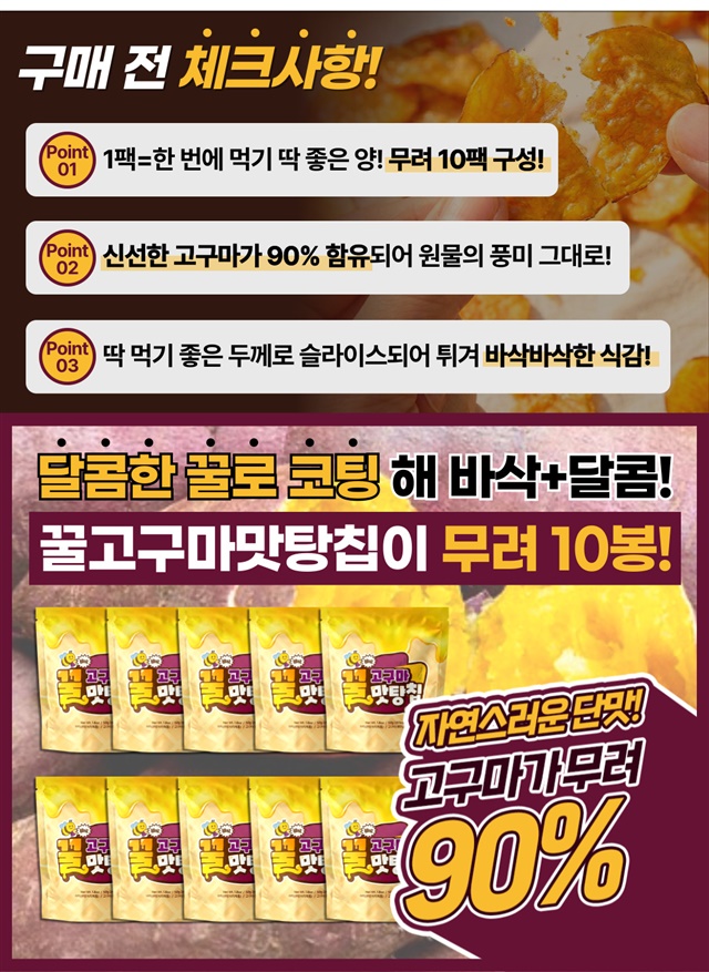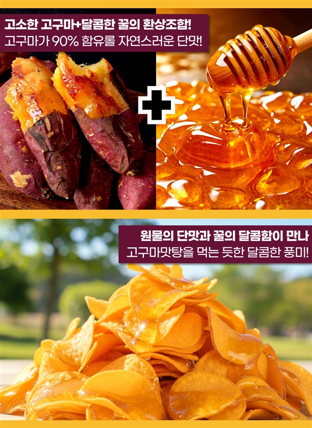 고구마 함량 90% 이상! 얇은 고구마칩에 꿀을 더한 특별함