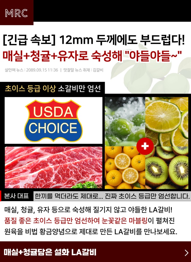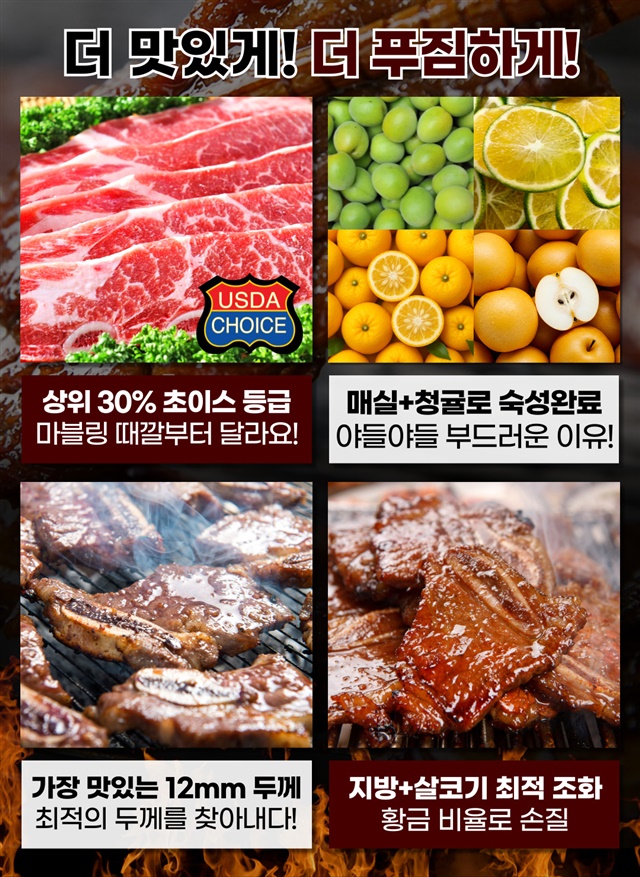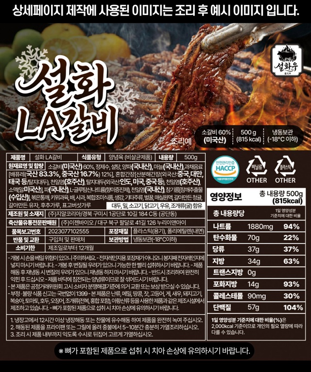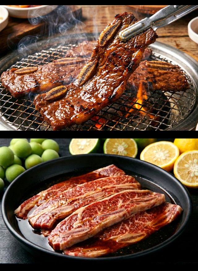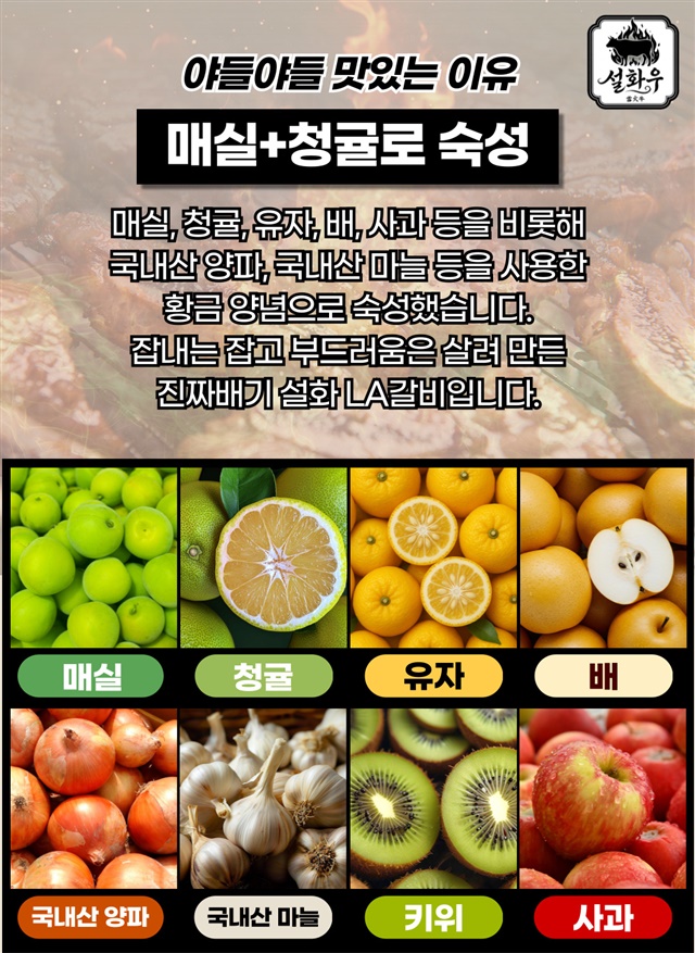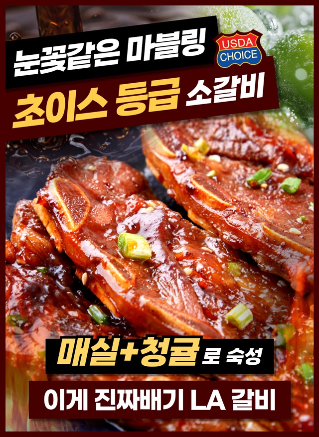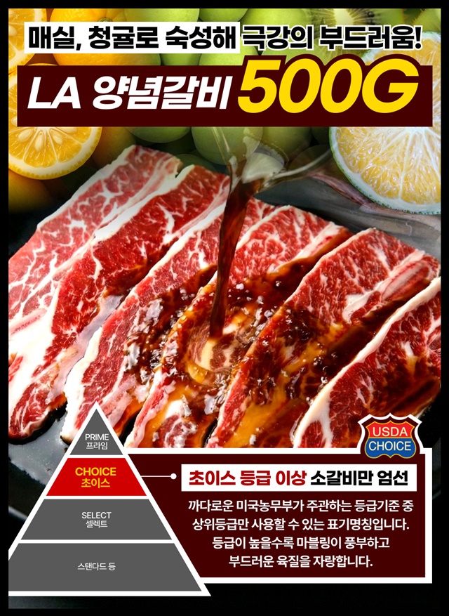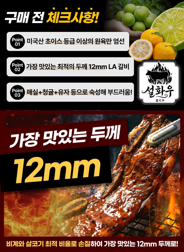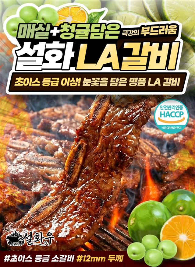 [설화우] 청귤+매실로 숙성한 12mm 눈꽃 마블링 프리미엄 설화 LA갈비 500g