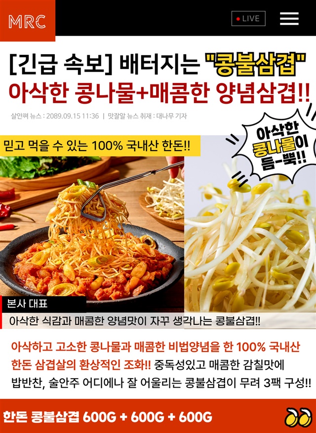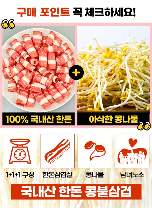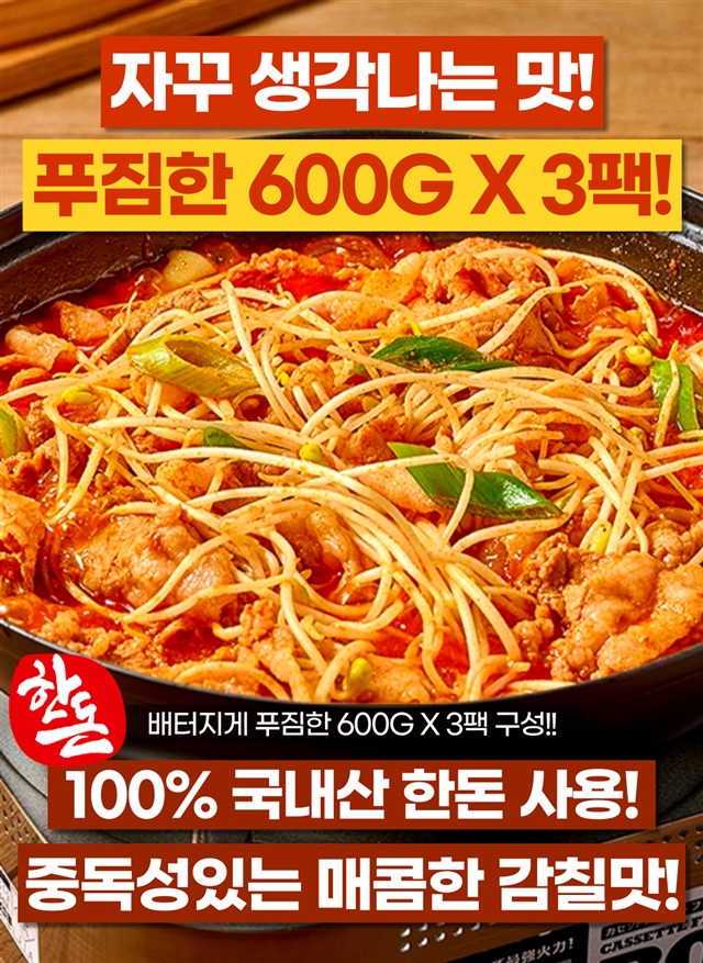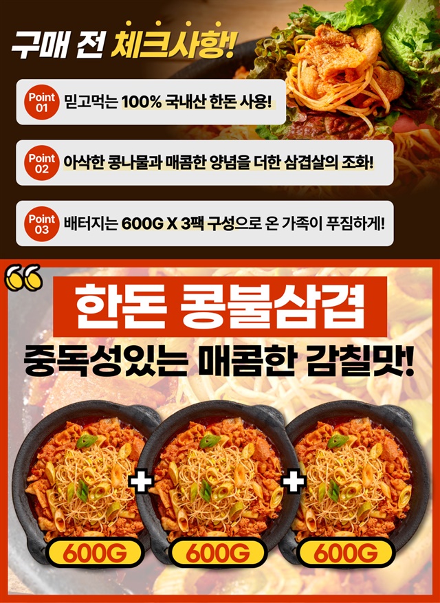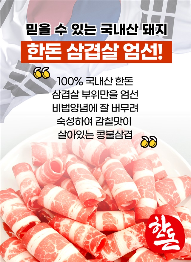 100% 국내산 한돈 삼겹! 아삭아삭 콩불삼겹 600G X 3팩 (총 1.8KG)