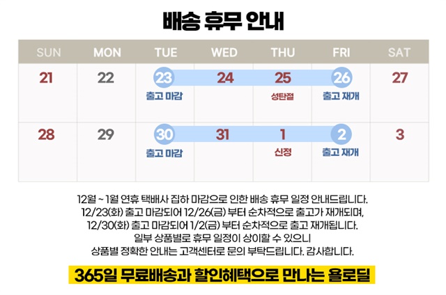 · 구매시 배송완료 1일 후 1% 포인트 지급