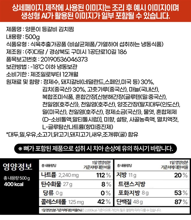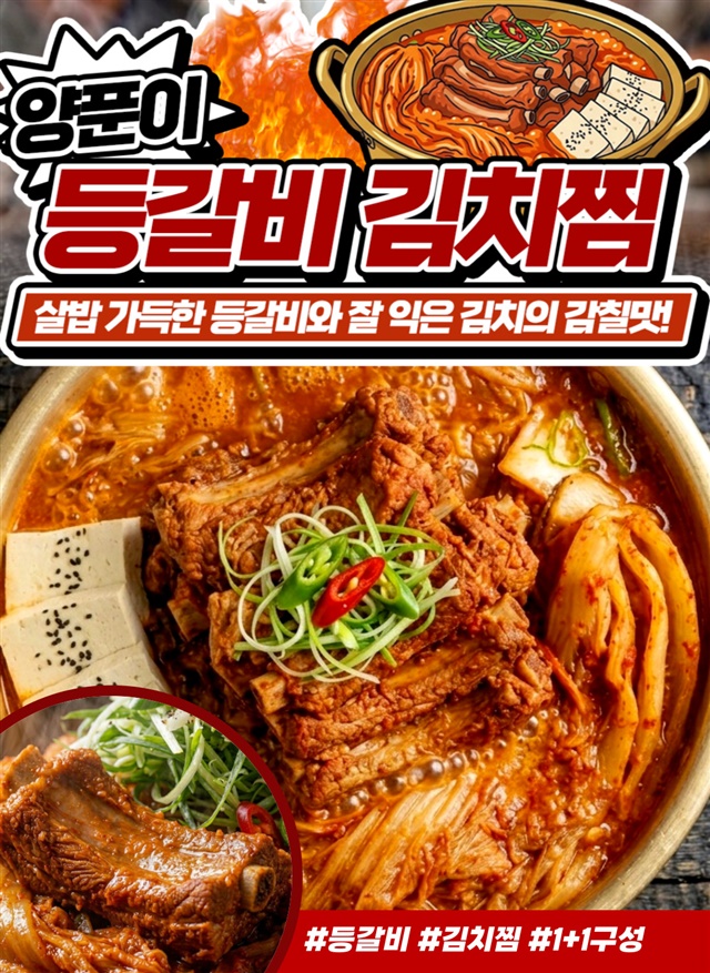 [1+1 구성] 등갈비가 듬뿍! 자글자글 양푼이 등갈비 김치찜 500G + 500G 구성!
