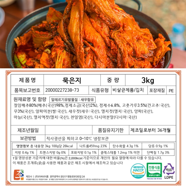 [100% 국내산] 잘 익은 저온숙성 전라도 묵은지 3kg/5kg/10kg