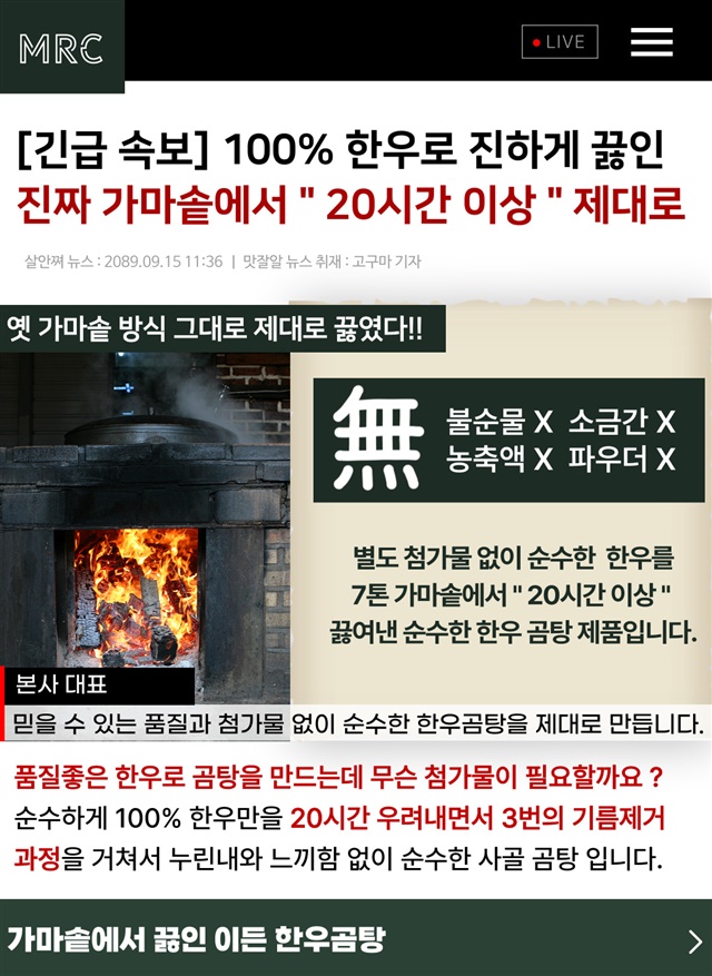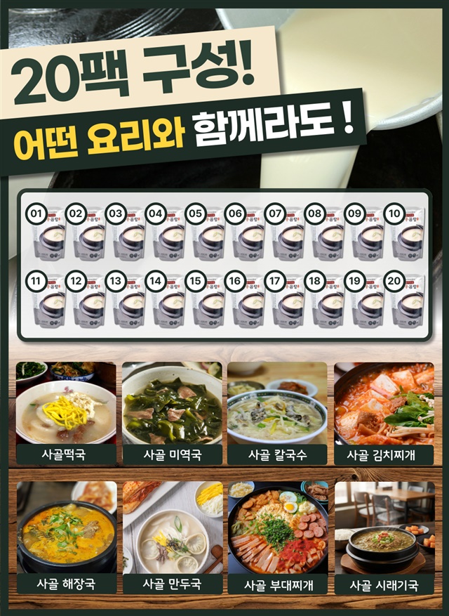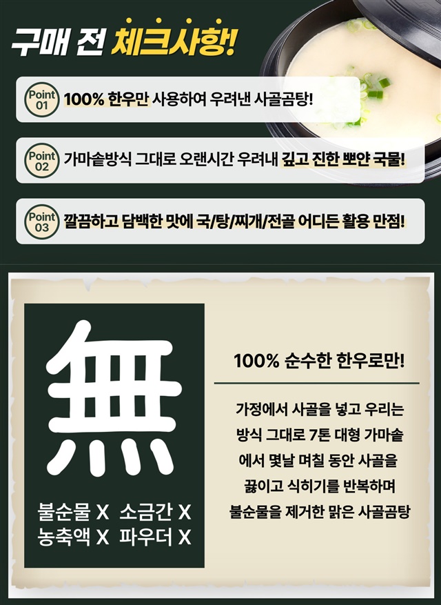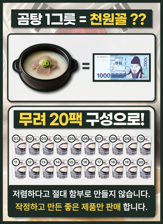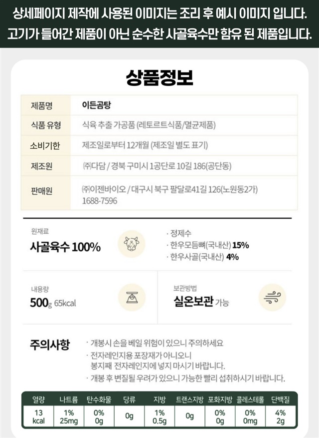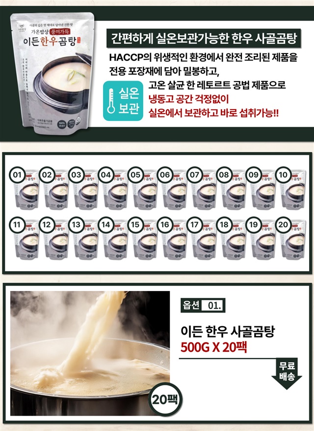 [100%한우] 진짜 한우사골을 가마솥에서 20시간 이상 끓여내서 만든 순수한 한우 이든사골 500G X 20팩