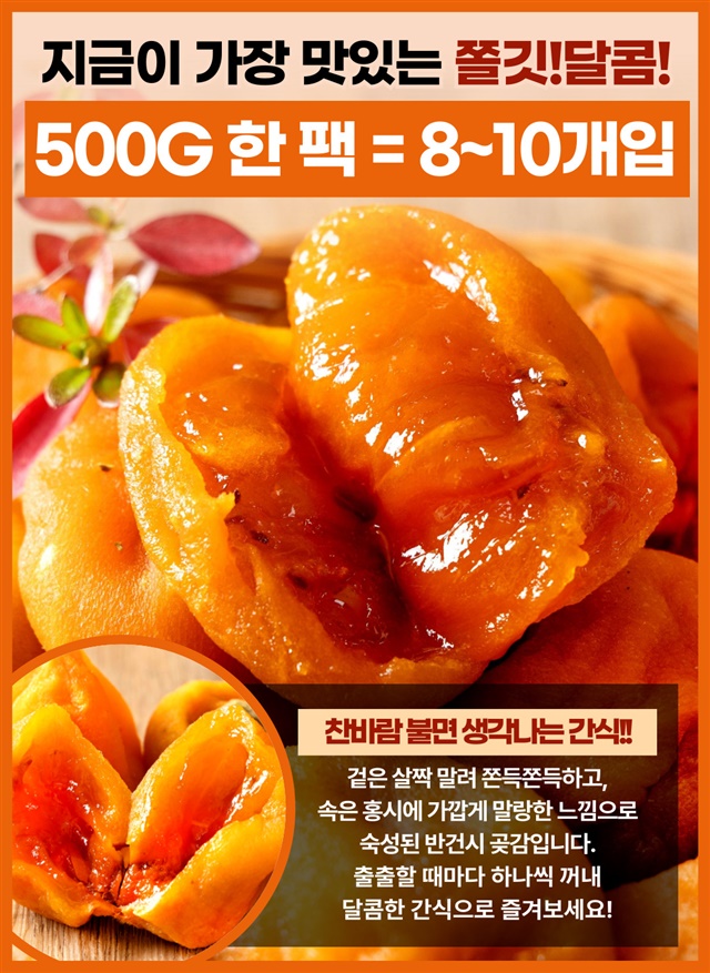 [본고장 상주] 말랑쫀득 부드러운 촉촉 반건시 곶감 500g (8-10개입)
