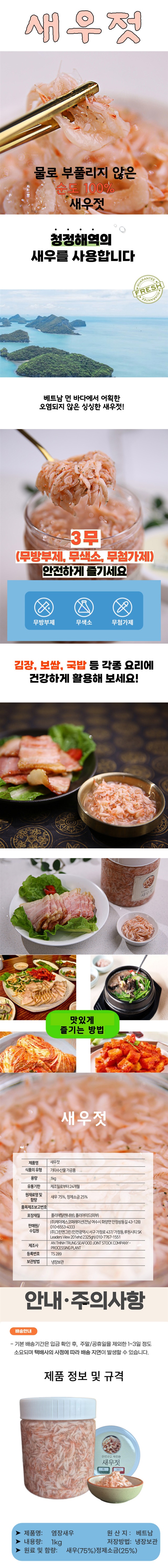 신선하고 깨끗한 순도 100% 새우젓 2KG