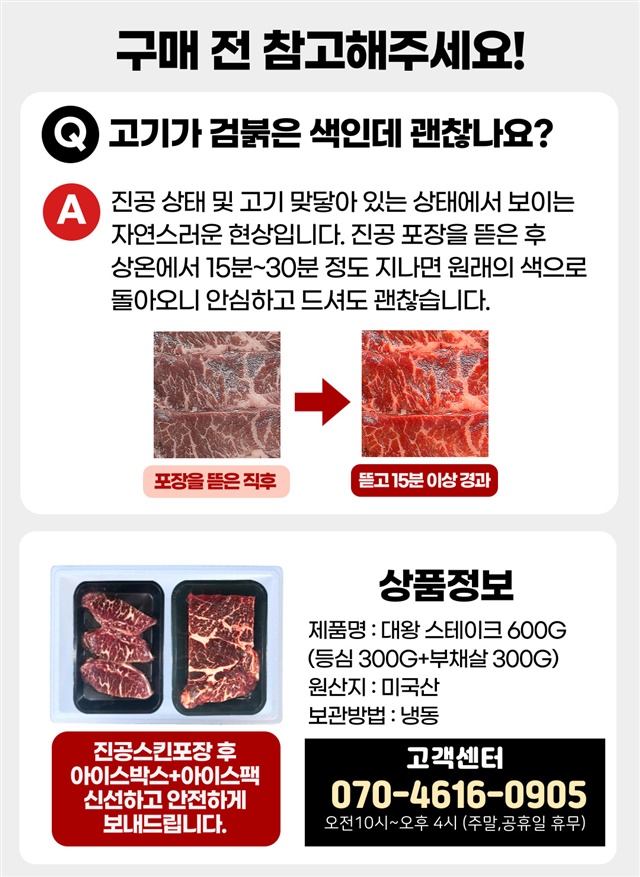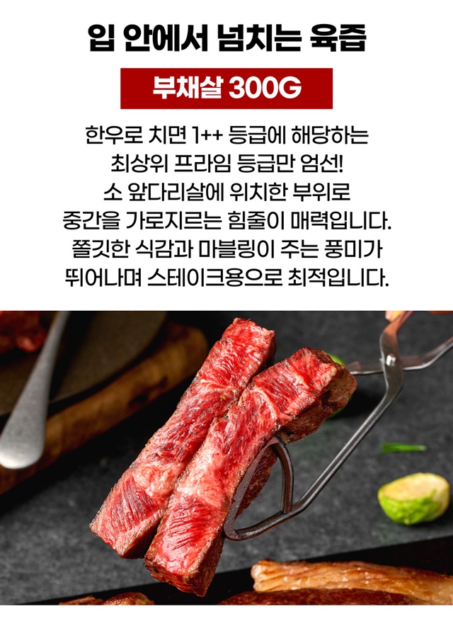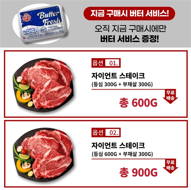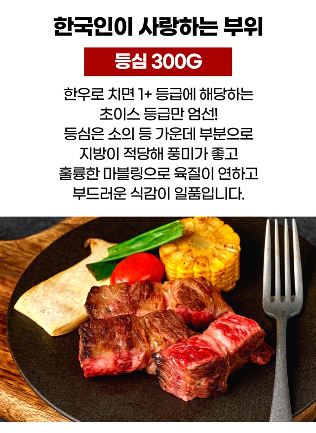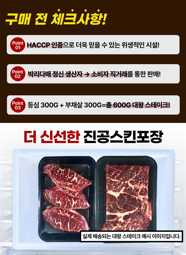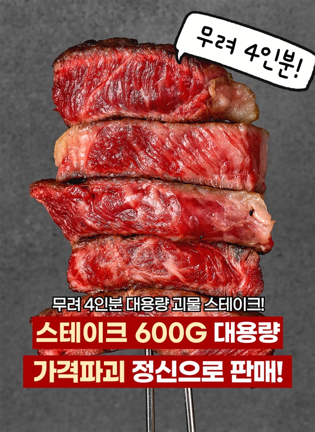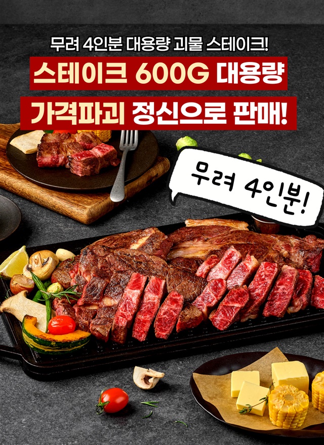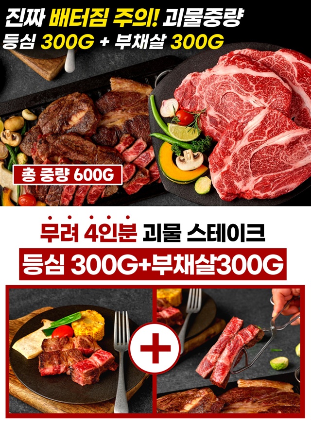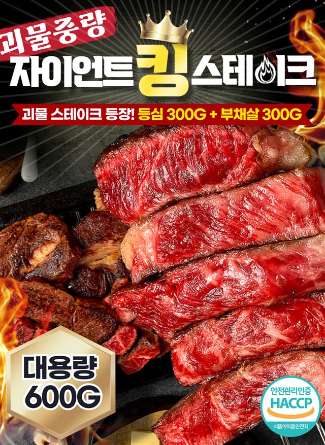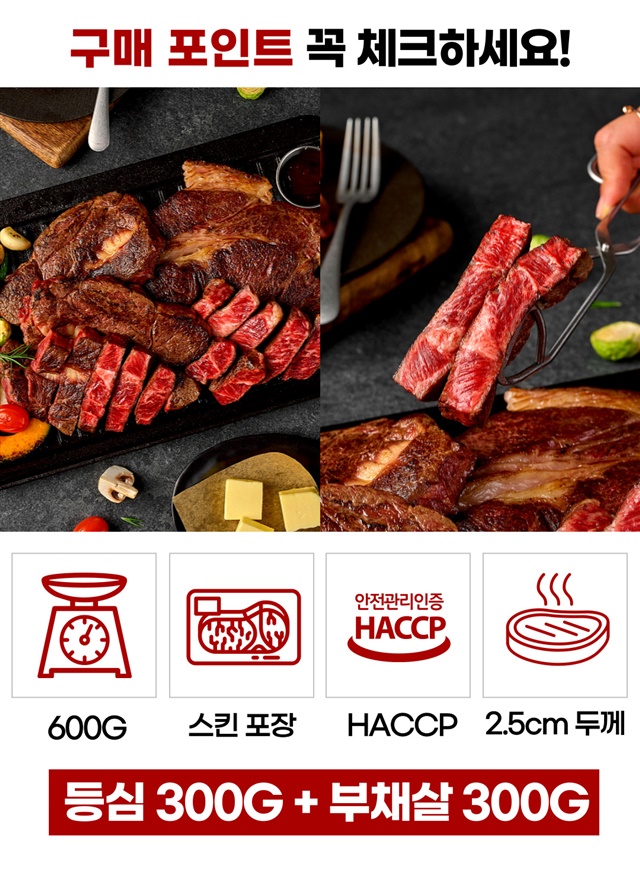 [괴물용량] 2.5cm 두툼한 자이언트 킹! 대왕 스테이크 600g 한판 (등심 300g+부채살 300g)
