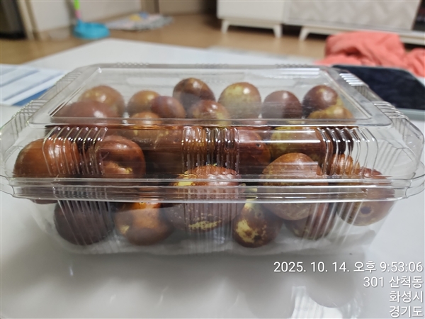 엄마가 너무 달고 맛있었다시네요. 받자마자 한통 다 드셨답니다. ㅎㅎ 저는 처음 먹어보는데 제입엔 달기만한게 맛있진않아서.. 대추특유의 식감은 좋네요. ㅎㅎ 크기는 혼합이지만 상당히 크고 좋았습니다. 초록색보다 갈색이 더 달고 맛있네요.