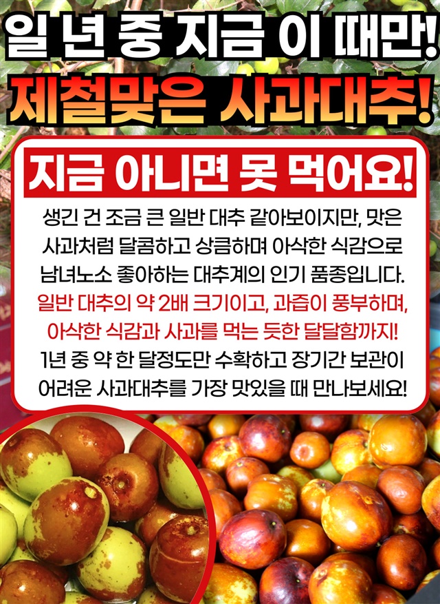 아삭하고 꿀처럼 달콤한 제철 햇! 사과대추 500g