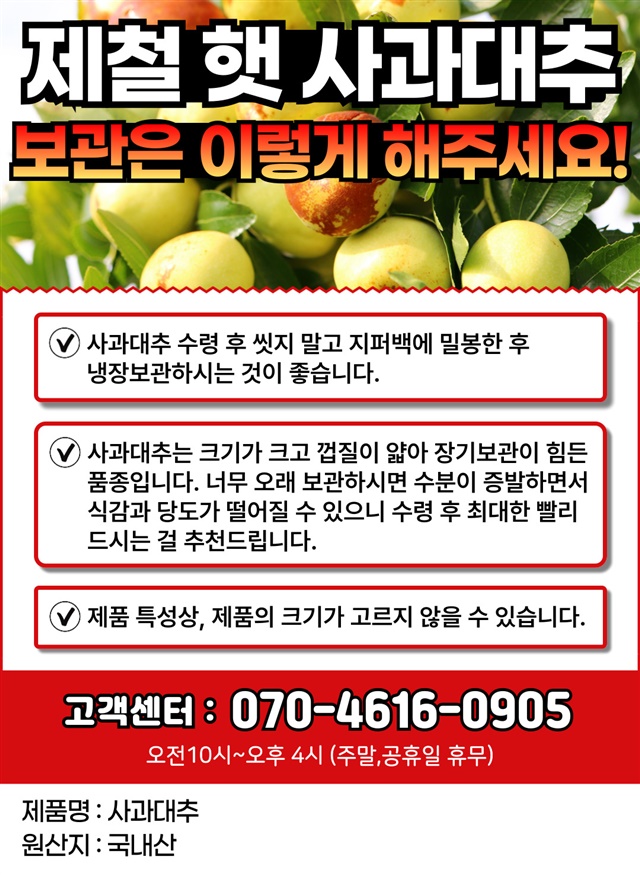 배송도 빠르고 사과대추 2킬로 구입했는데 맛있어요.
