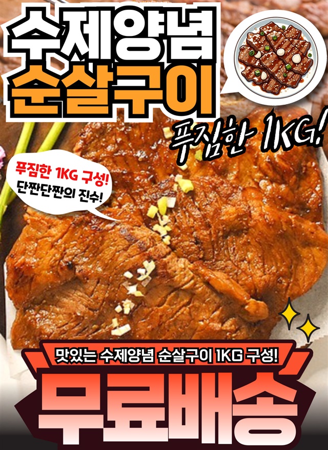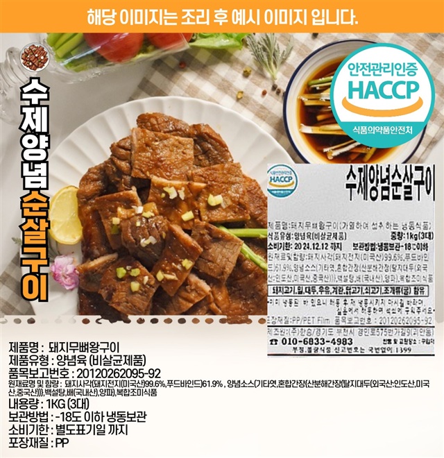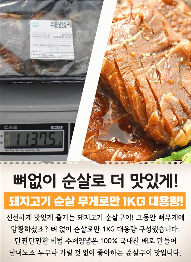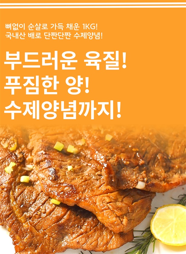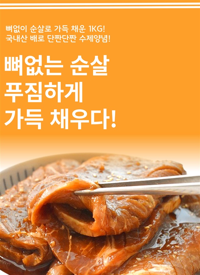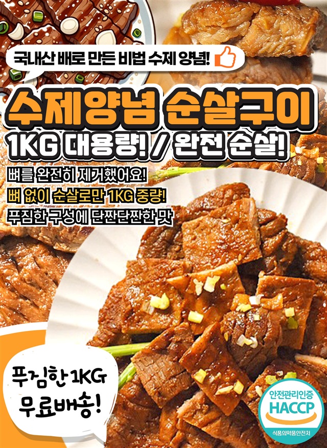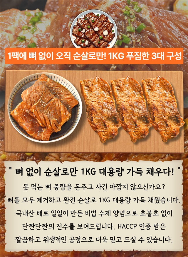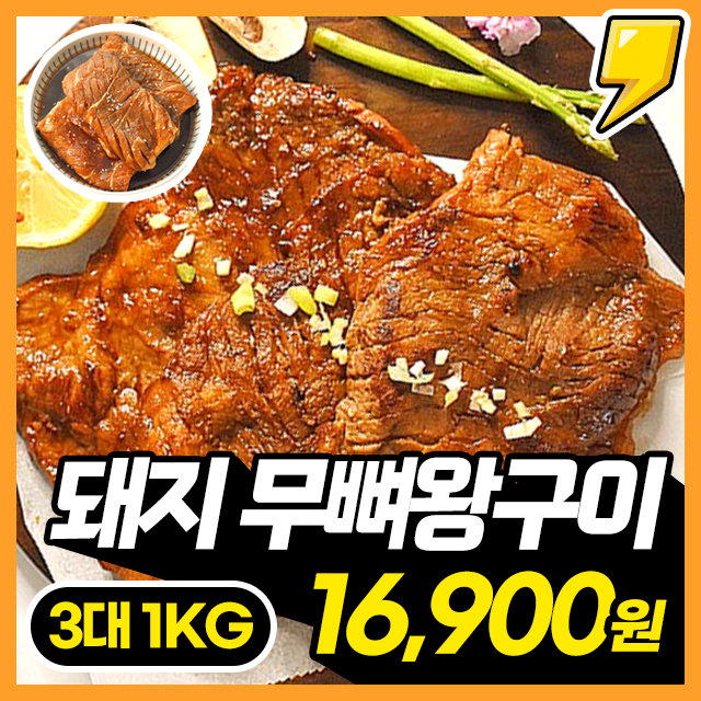 [양념구이] 국내산 배로 만든 비법수제양념 돼지 무뼈왕구이 1KG / 3대