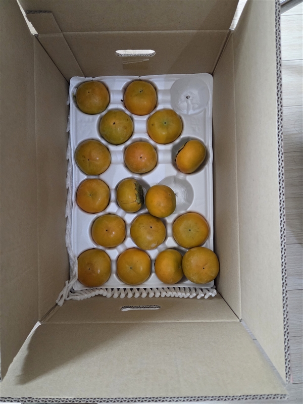 엄청 싱싱한 단감이 서른 개 넘게 왔어요 !!^^ 저희 집에 단감 킬러가 있는데 너무 너무 맛있다고 좋아해요~^^ 하나도 무르지 않고 단단한게 잘 왔네요♡ 잘 먹겠습니다♡♡