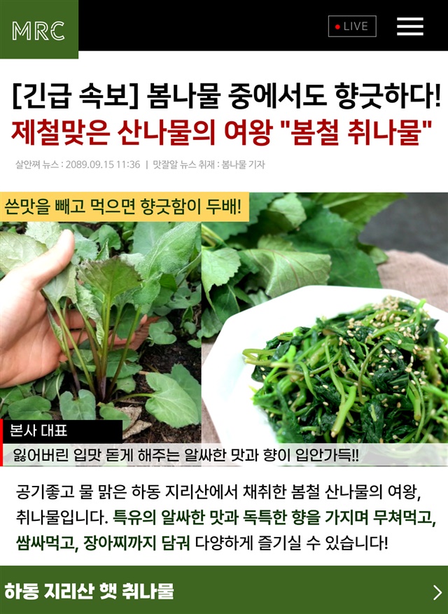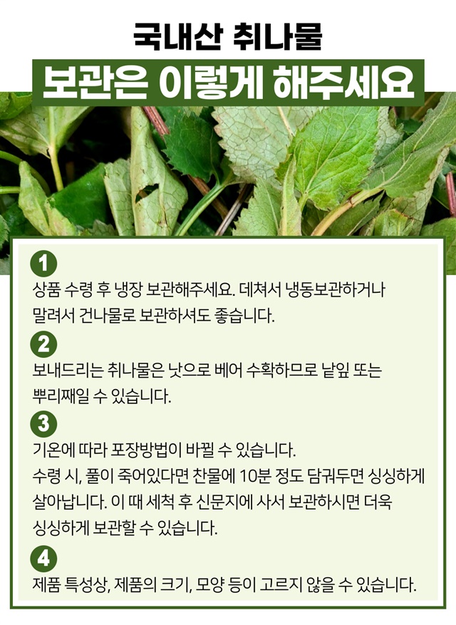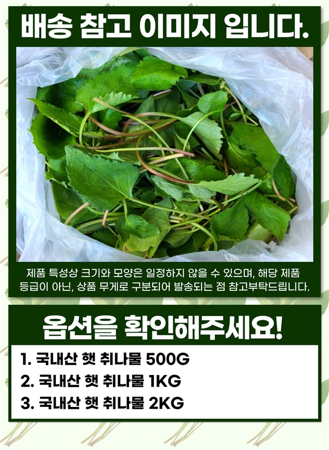 봄 제철! 향긋한 지리산 햇 취나물 500g