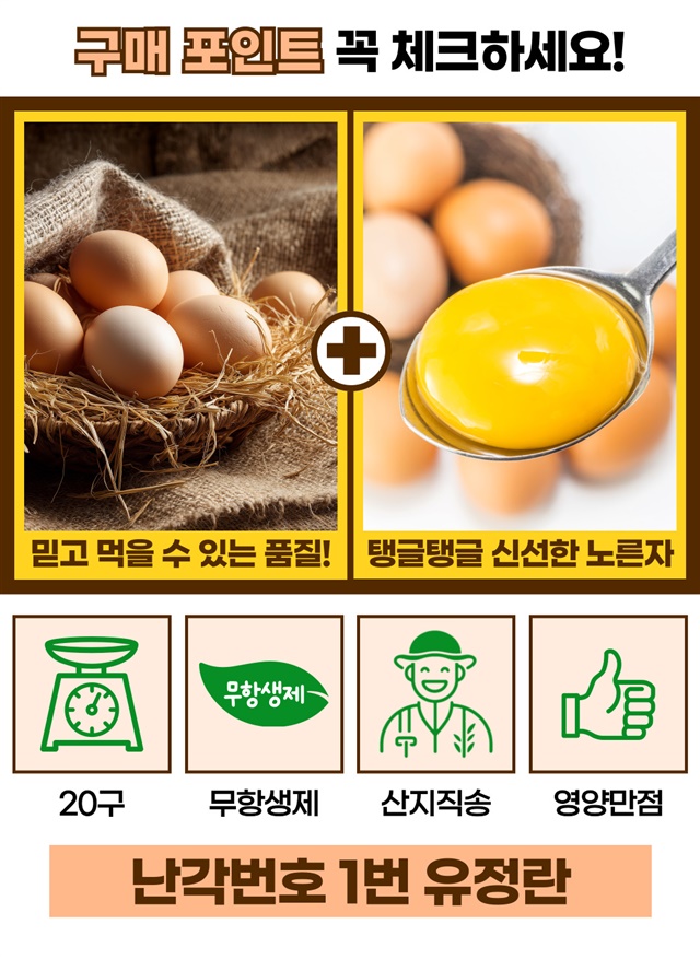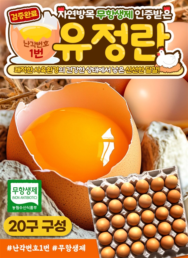 난각번호1번 유정란 무항생제 계란 20구/40구/60구