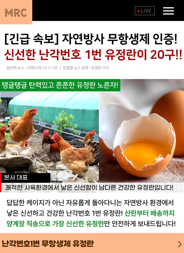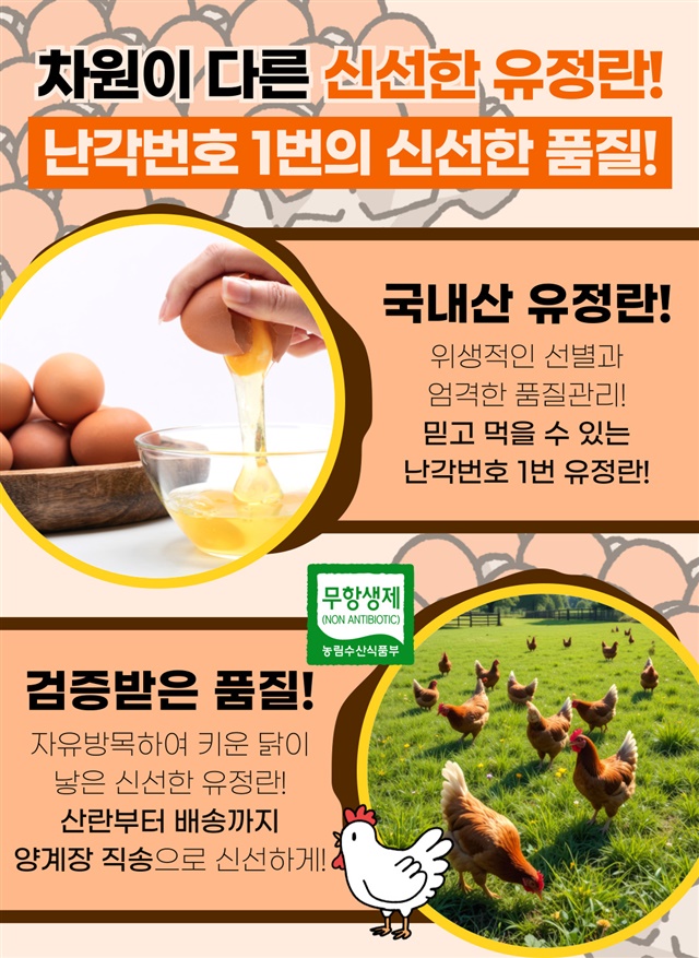 친환경으로 키운 닭이 낳은 무항생제 달걀