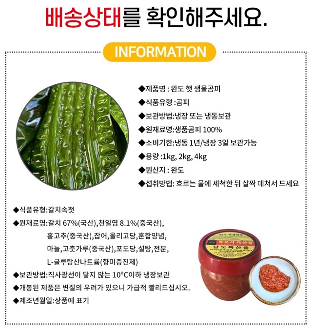 오독오독! 영양가득 완도 햇 생물 곰피 (쇠미역) 1kg