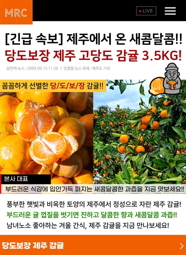[당도보장] 당도선별 완료! 고당도 제주 감귤 3.5KG (로얄과)