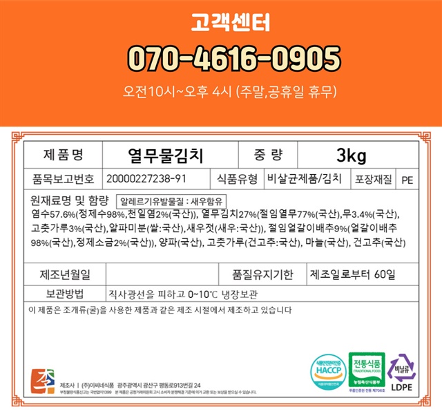 100% 국내산 열무로 만든 아삭시원한 별미