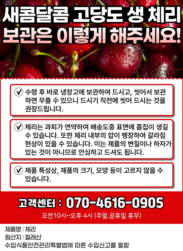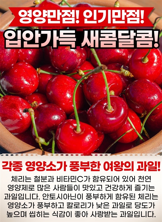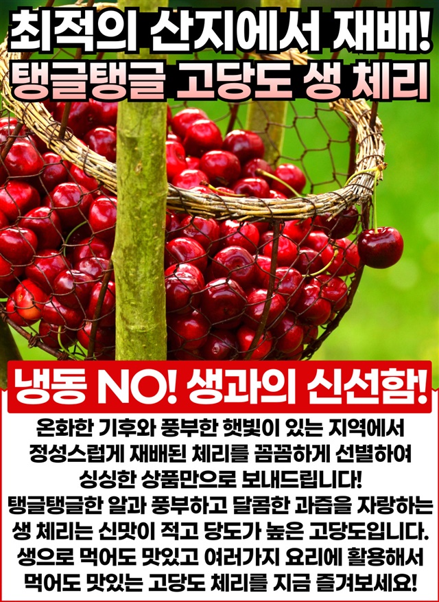 오 신선함과 체리달콤한 맛이 너무 맛있어요 다른 제품이랑 여러개 사서 할인도 많이 받았어요