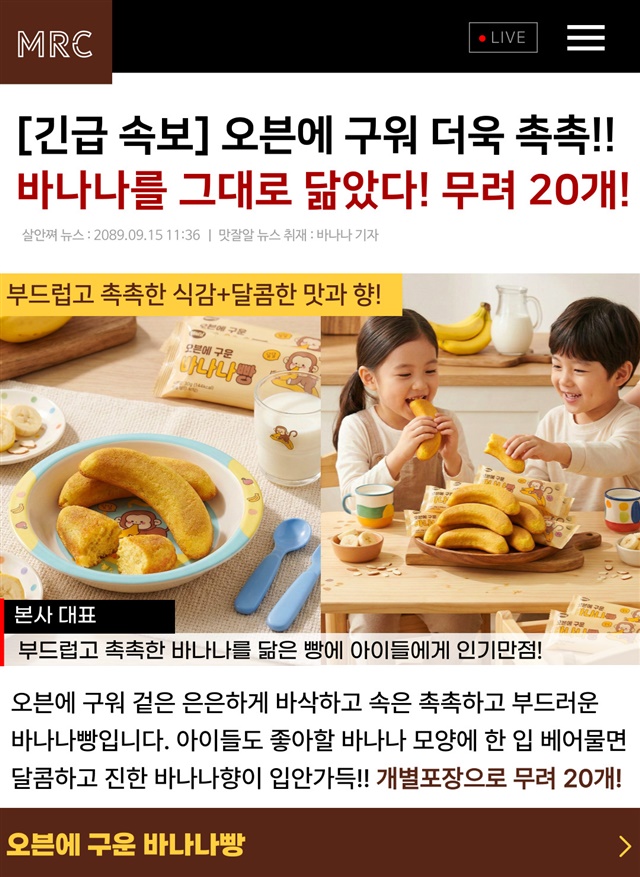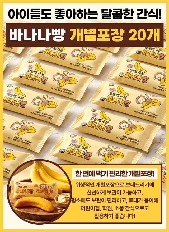 [개별포장 / 20개입 한박스] 촉촉 달콤한 진짜 오븐에 구운 바나나빵 20개입 한박스!!