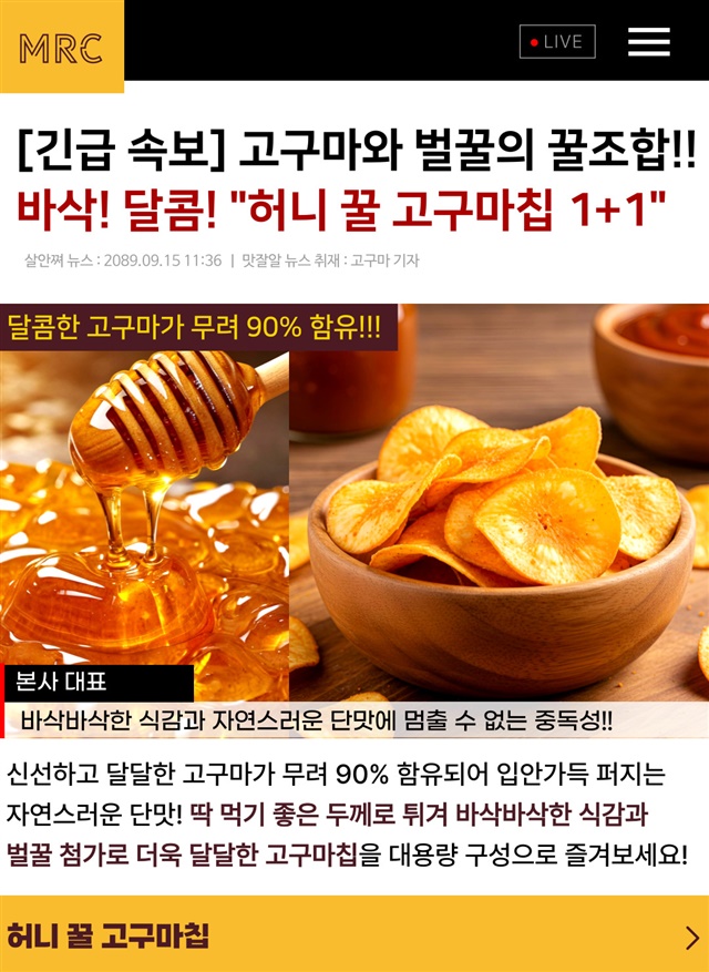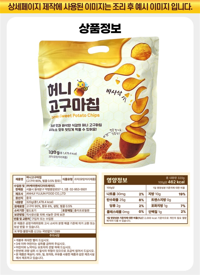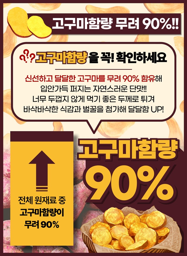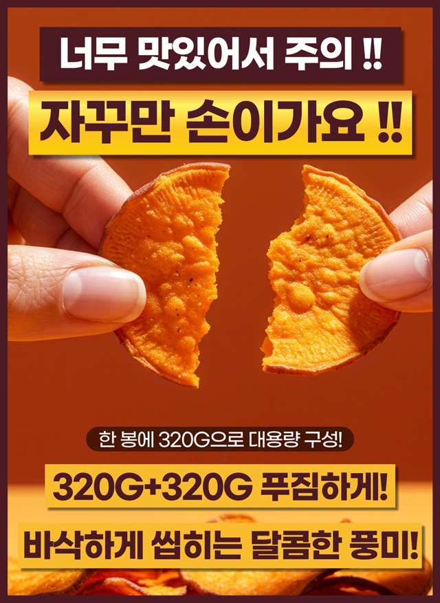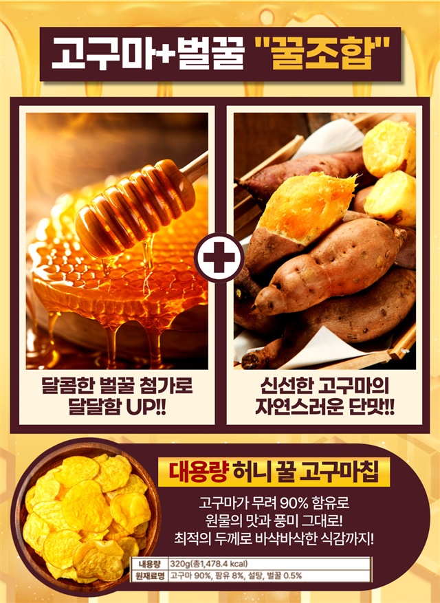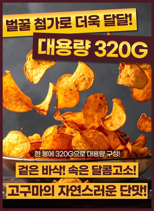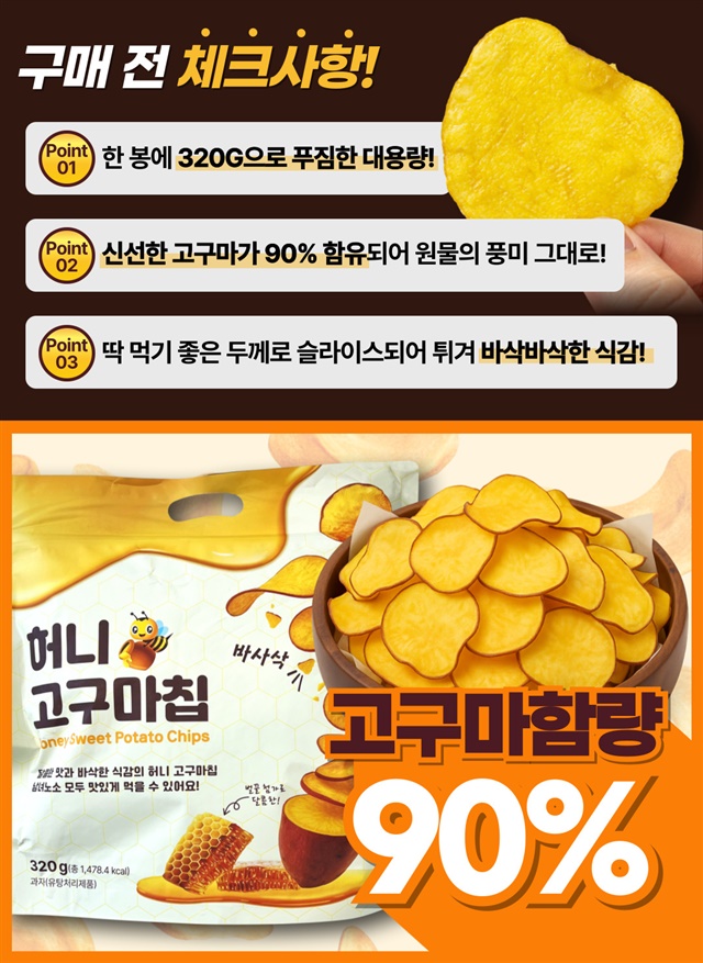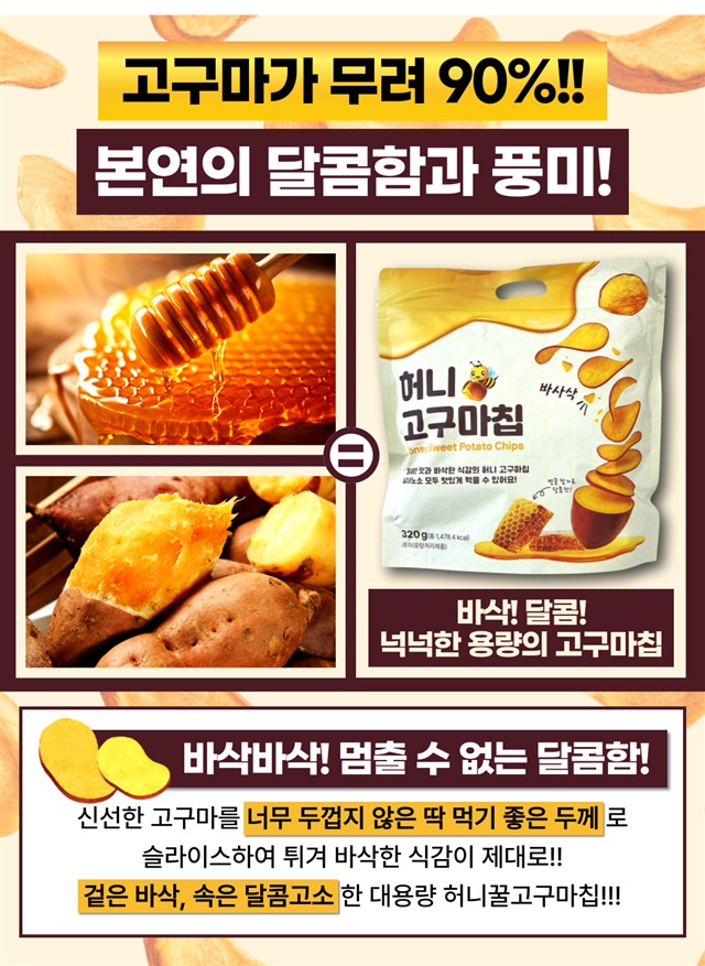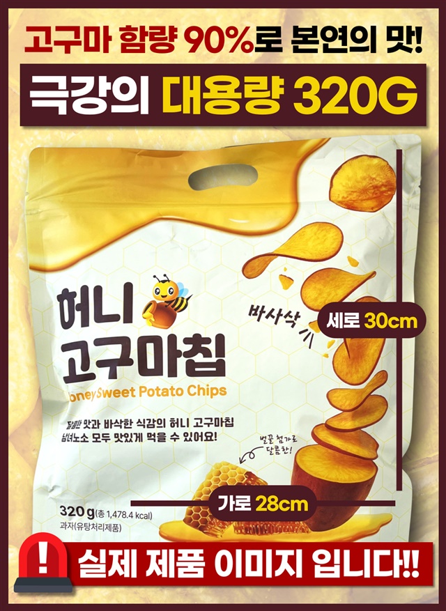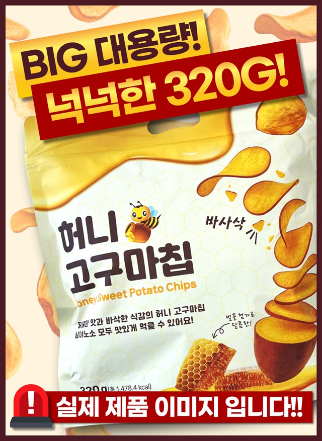 [대용량 1+1 구성] 바삭! 달콤! 고구마 함량 90% 허니 꿀 고구마칩 320G + 320G